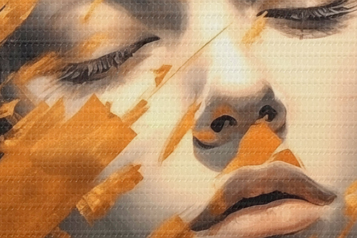 Smalkais diegu pinums uz šī audekla atgādina profesionālu mākslinieku audeklu virsmu.