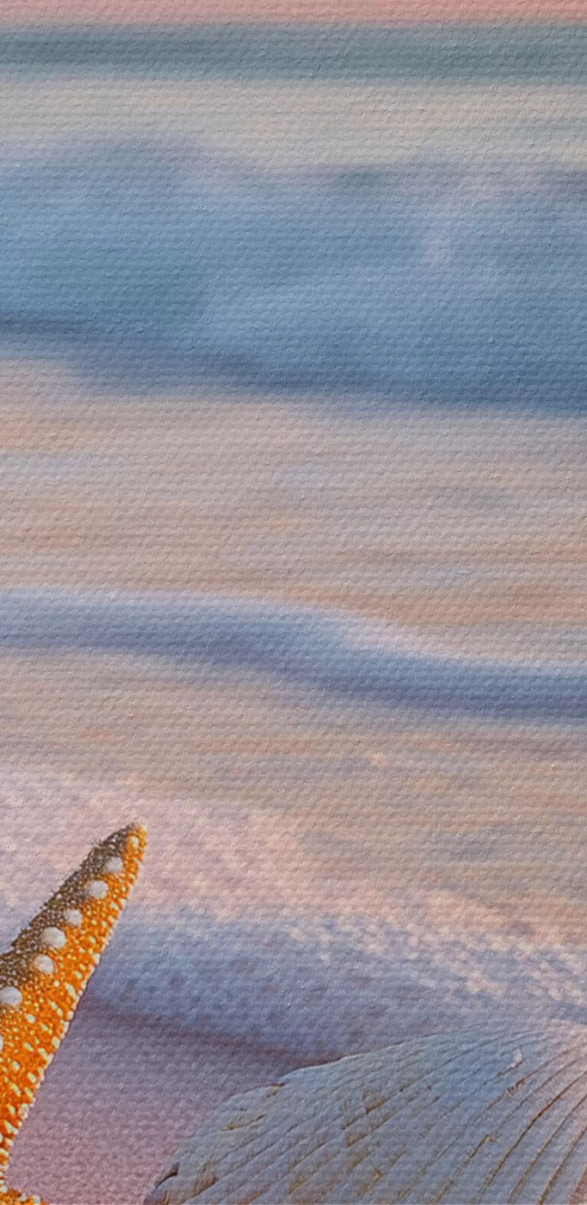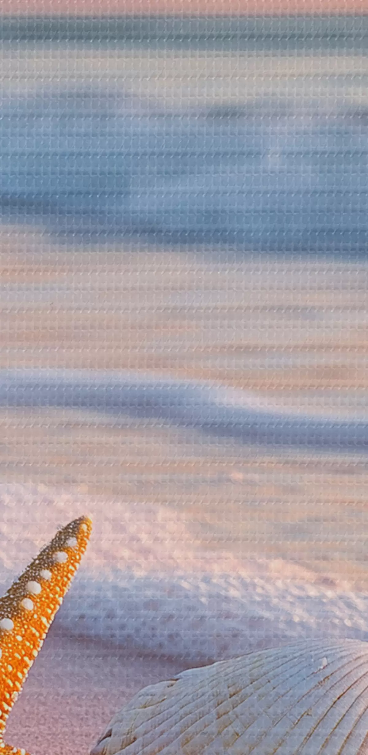 Attēls Jūras piekraste ar jūras zvaigznēm, gliemežvākiem un viļņiem Nr r44714