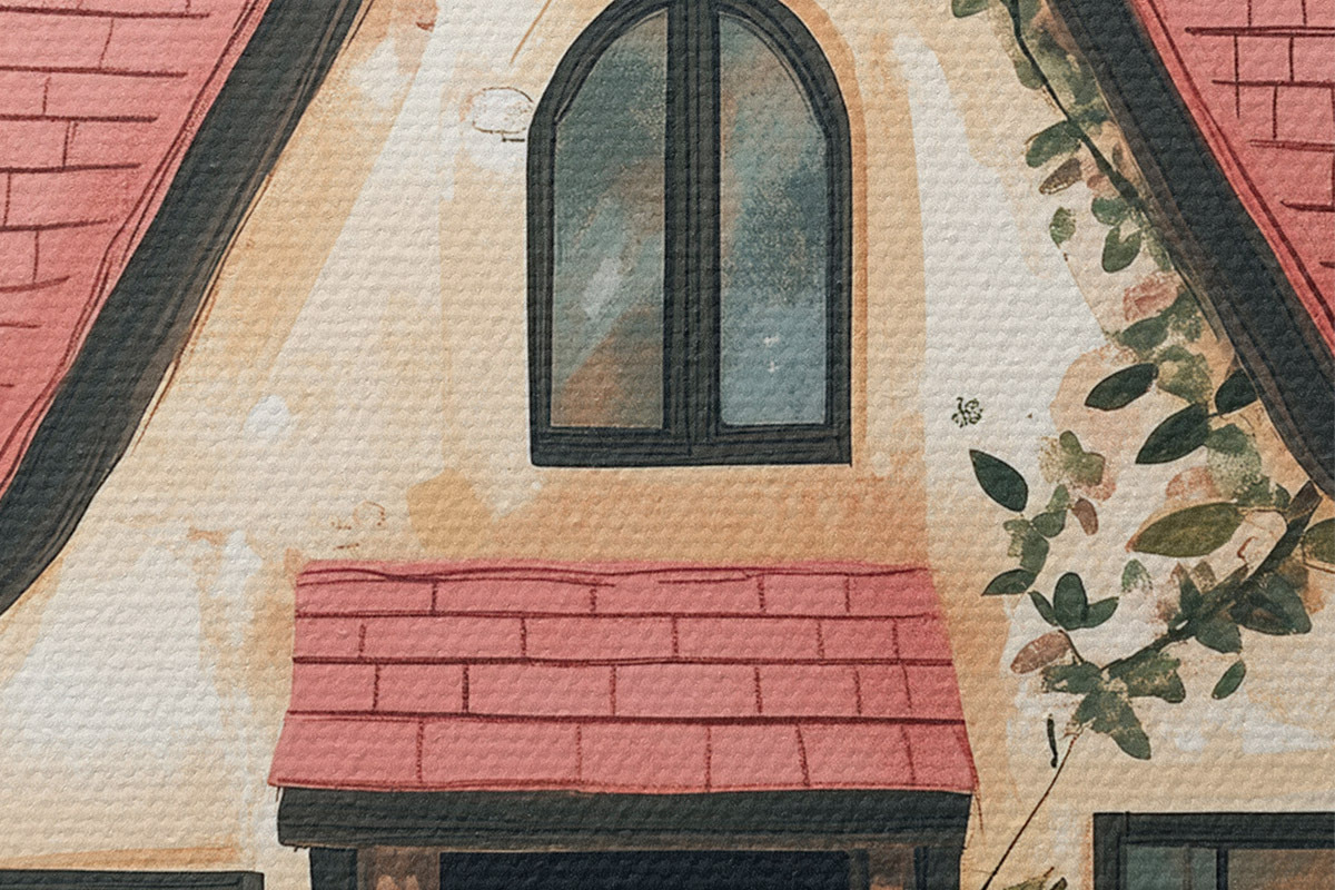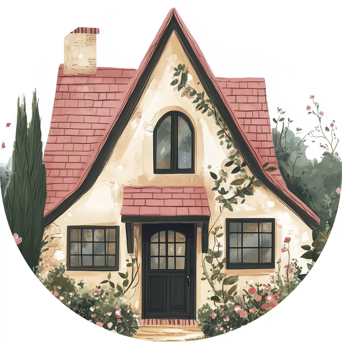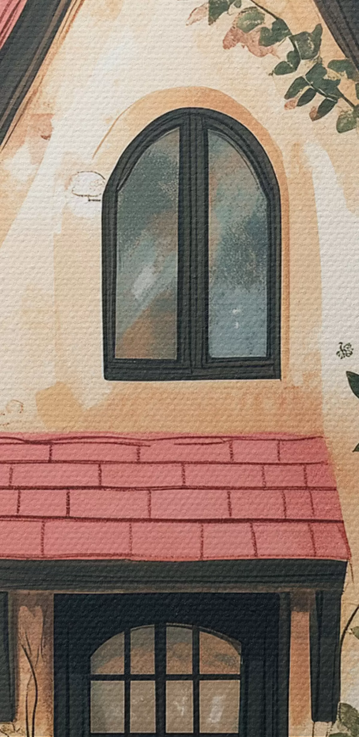 Attēls Pasaku māja mežā, rozes, pasteļstils Nr r44718