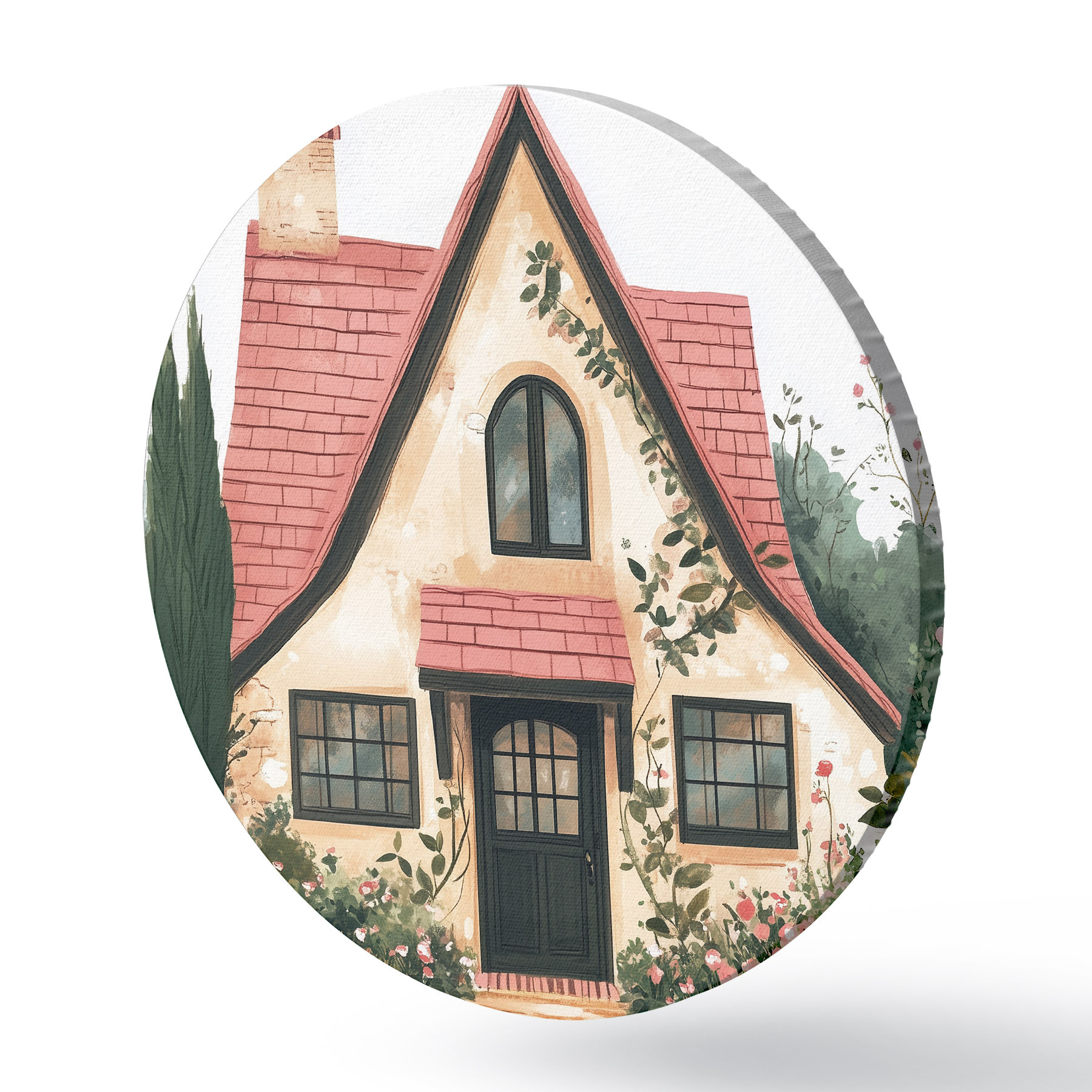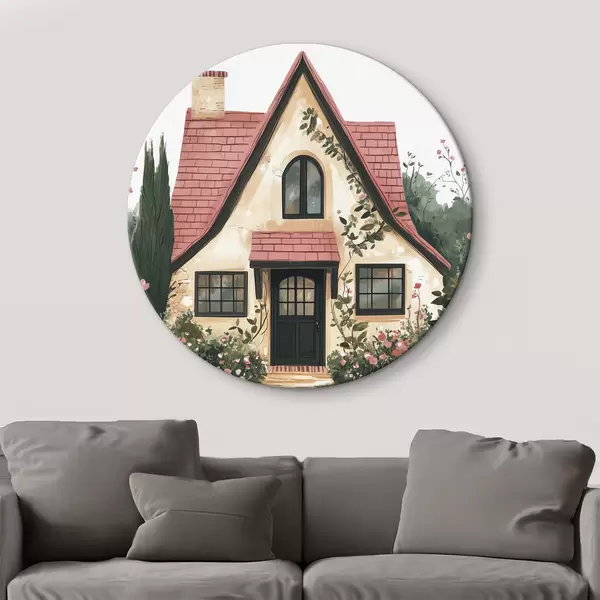 Apaļas gleznas Pasaku māja mežā, rozes, pasteļstils r44718