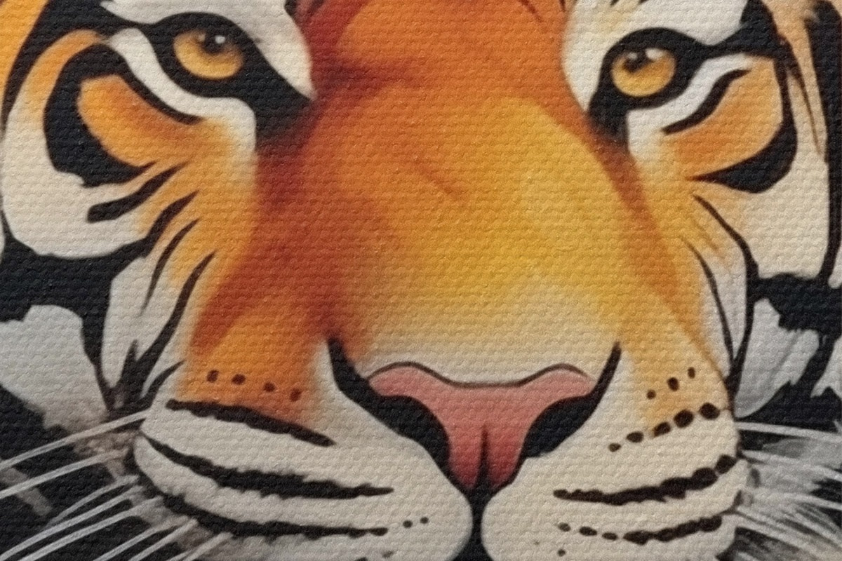 Smalkais diegu pinums uz šī audekla atgādina profesionālu mākslinieku audeklu virsmu.