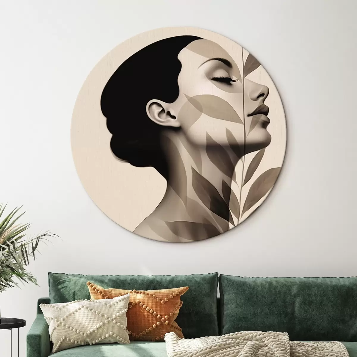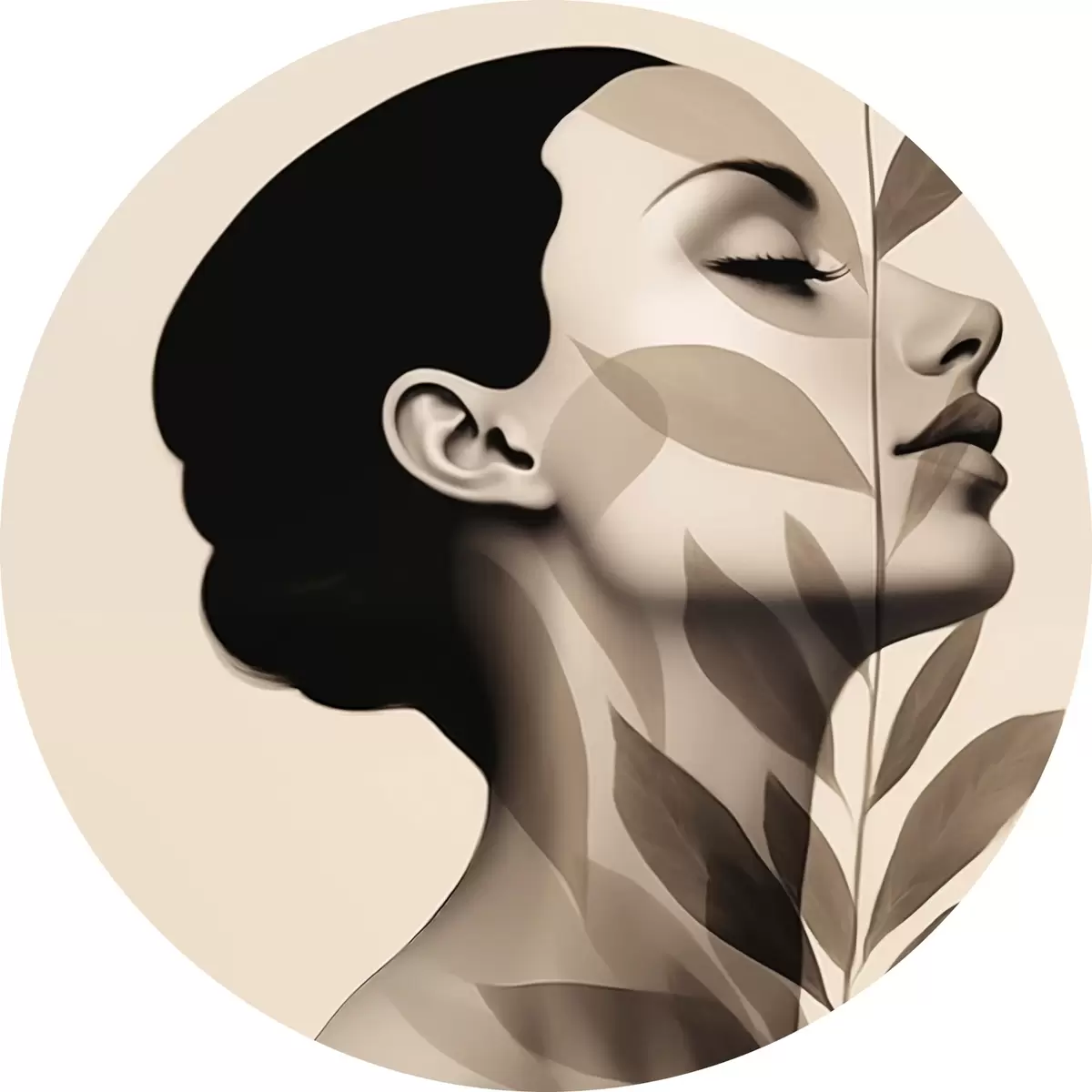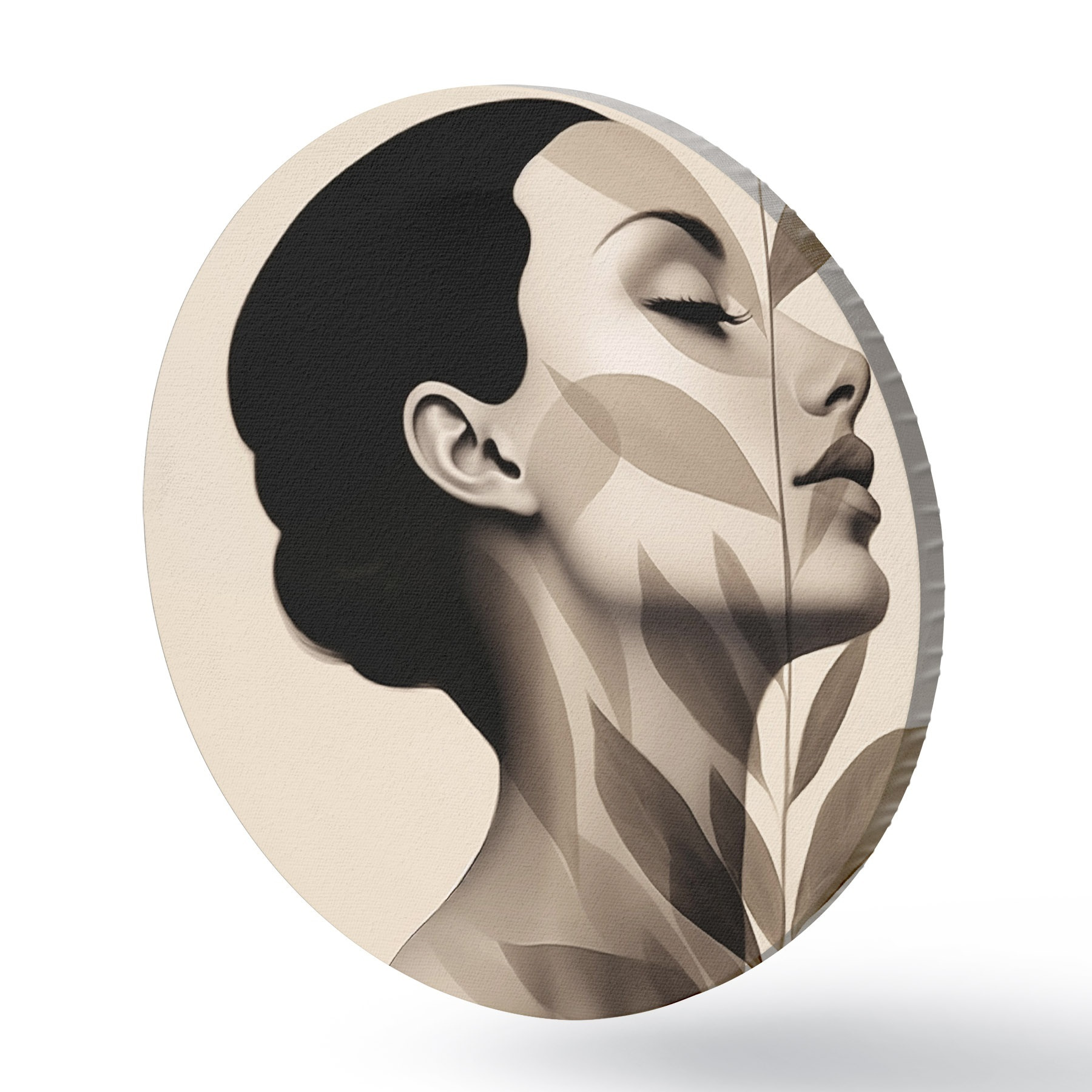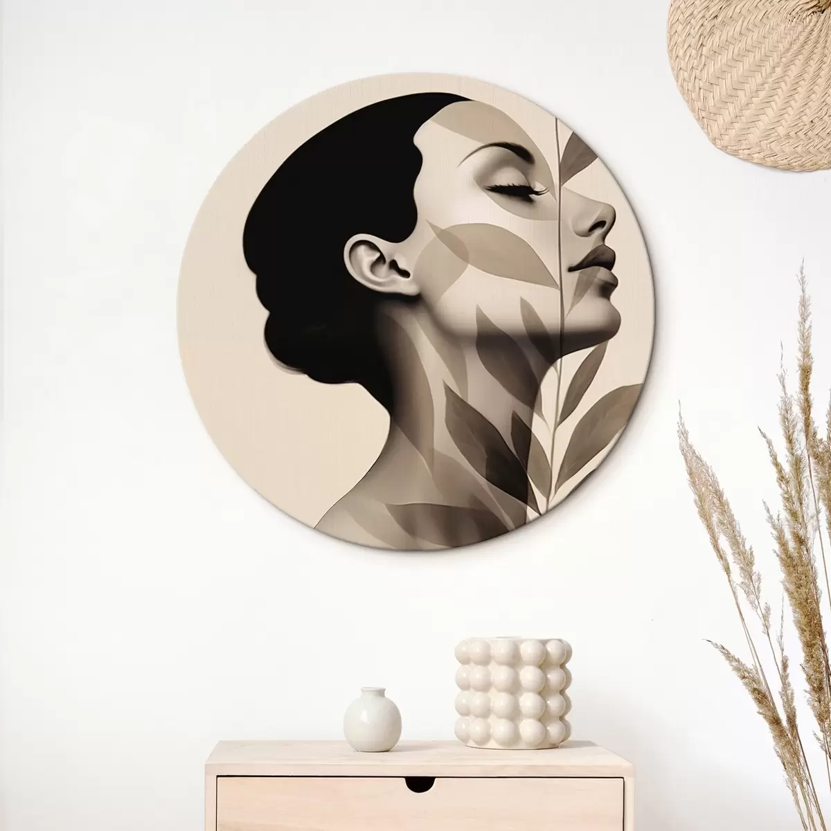 Apaļas gleznas Sievietes profils ar ziedu rakstu r44725