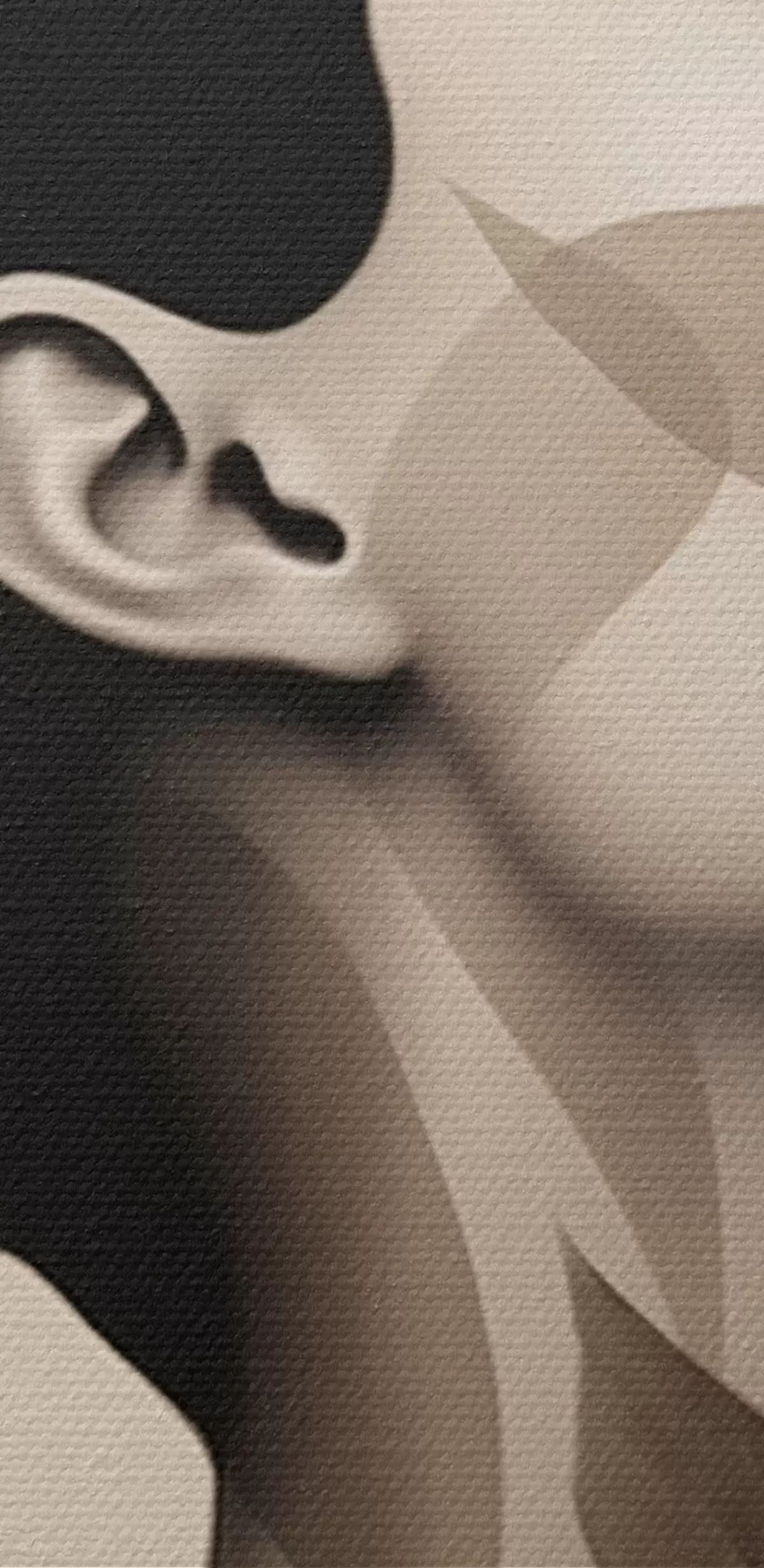 Smalkais diegu pinums uz šī audekla atgādina profesionālu mākslinieku audeklu virsmu.