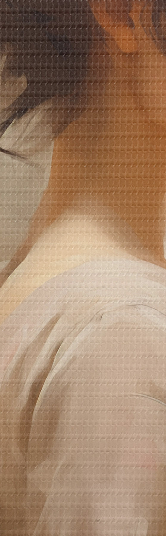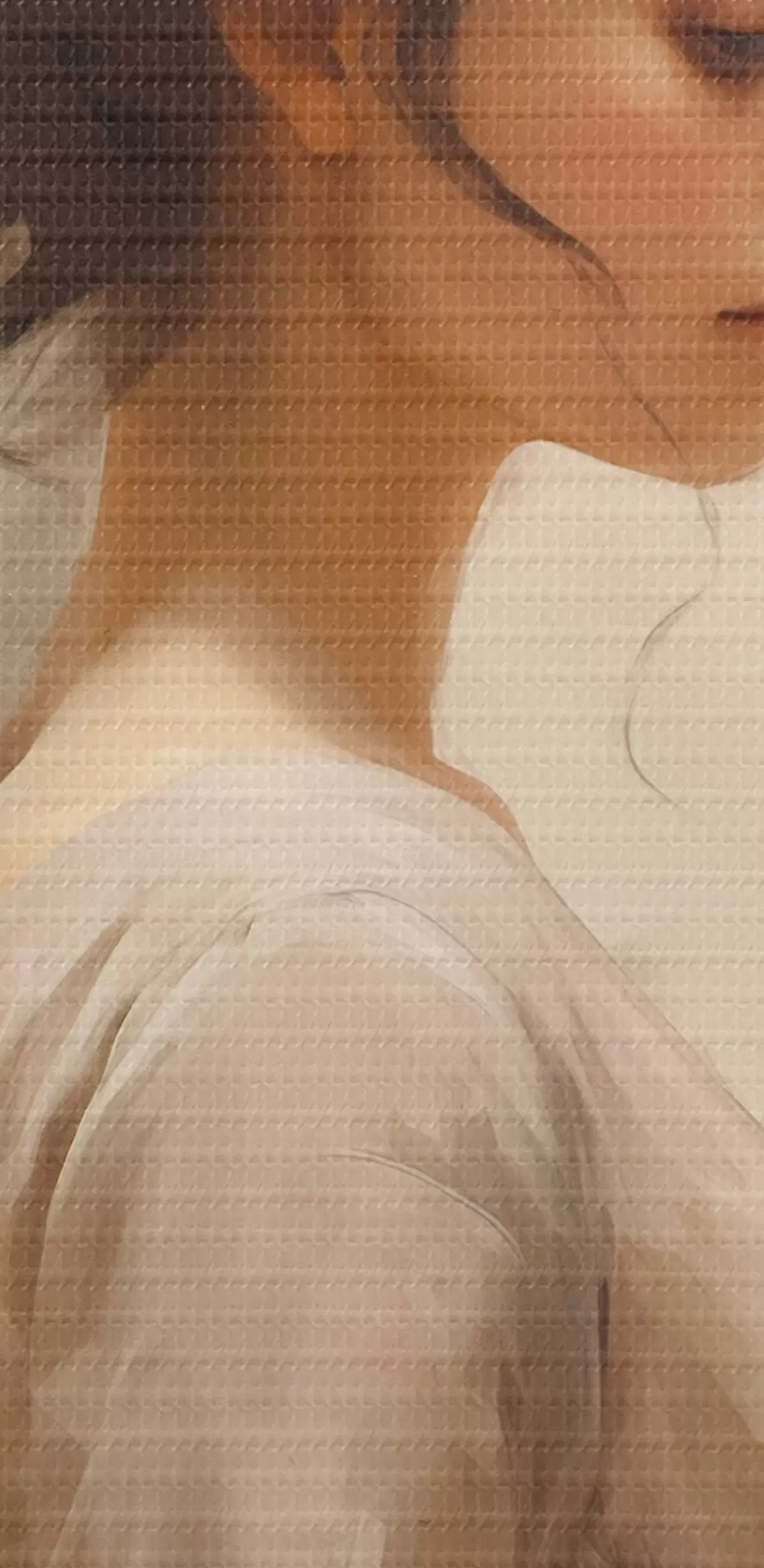 Smalkais diegu pinums uz šī audekla atgādina profesionālu mākslinieku audeklu virsmu.