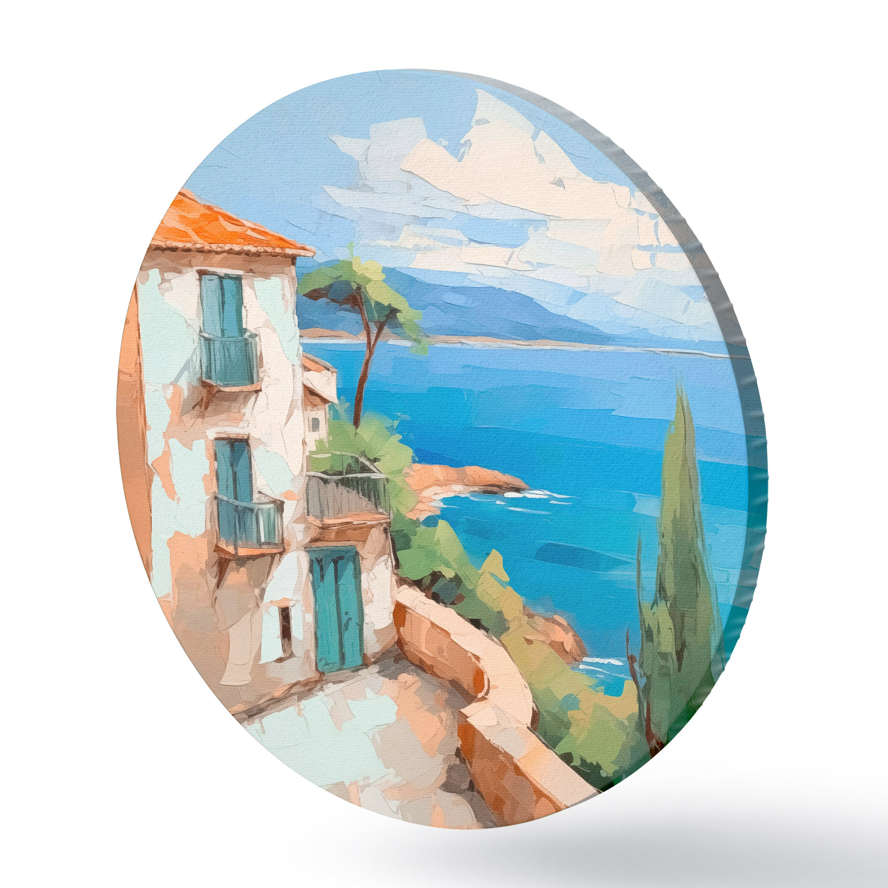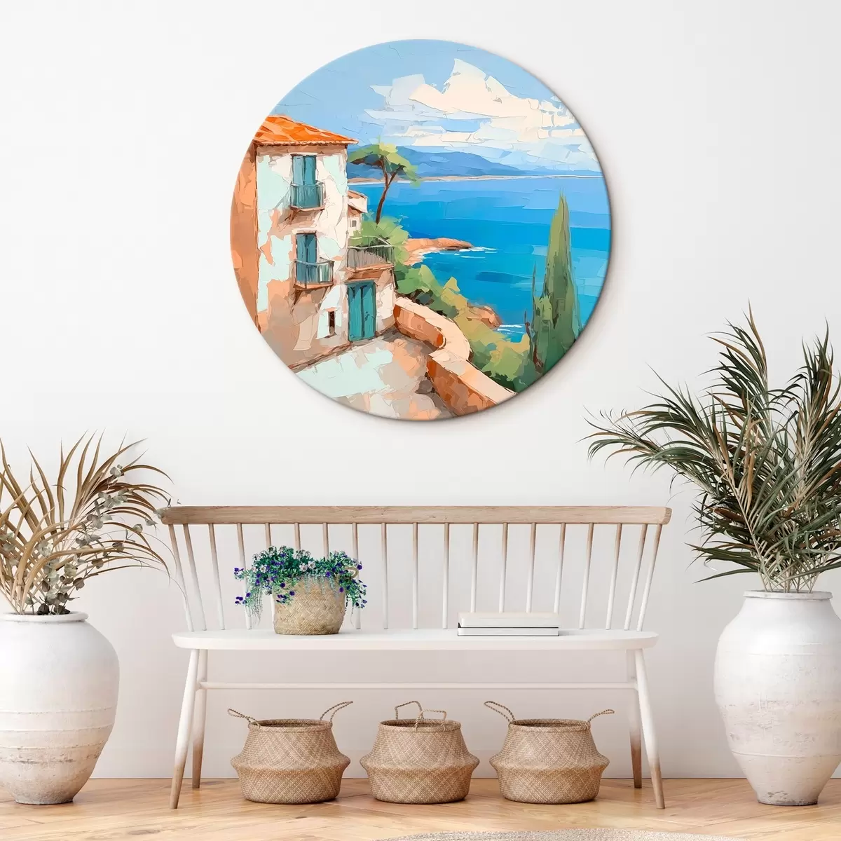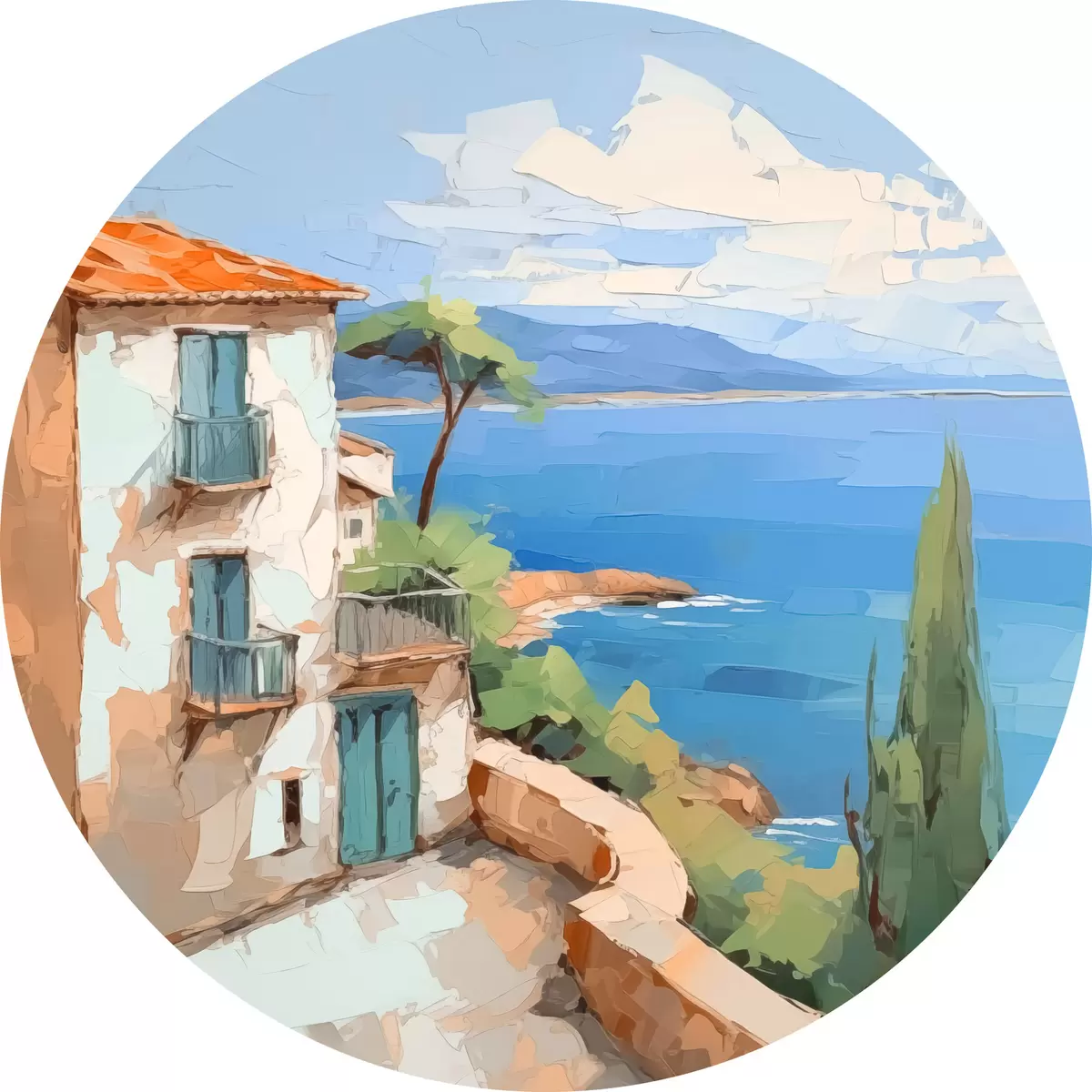Apaļas gleznas Māja pie jūras glezniecības imitācija r44767