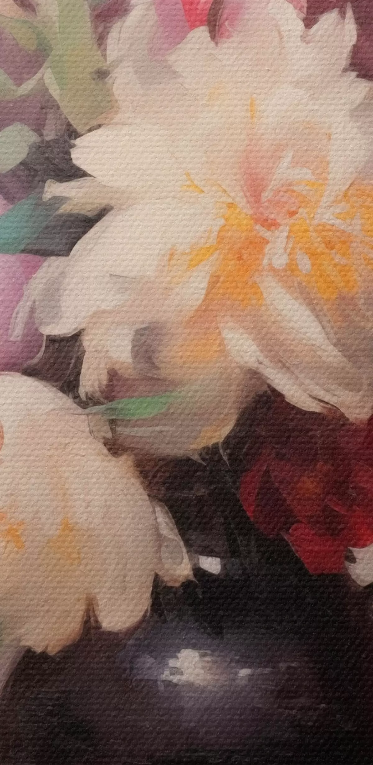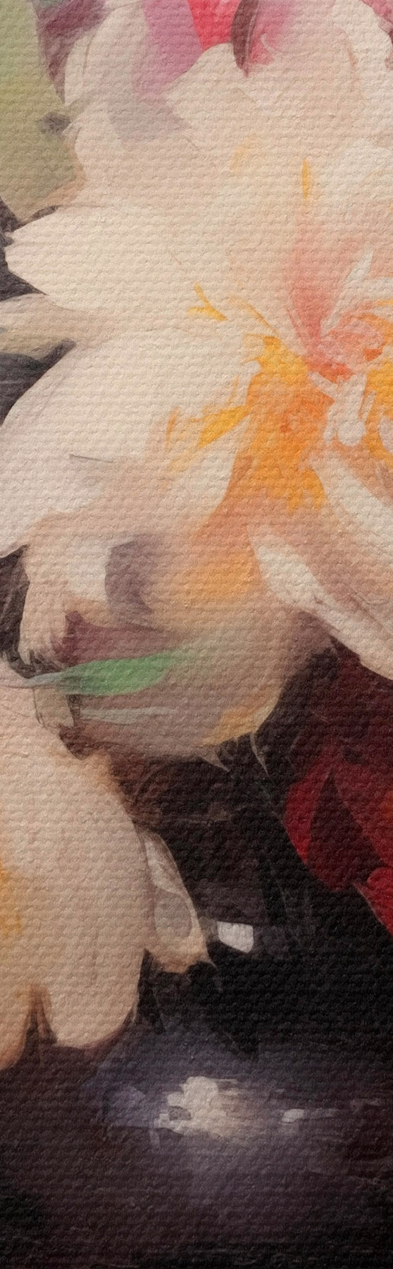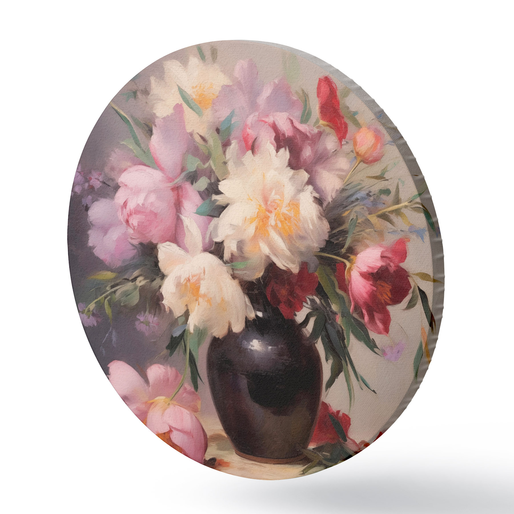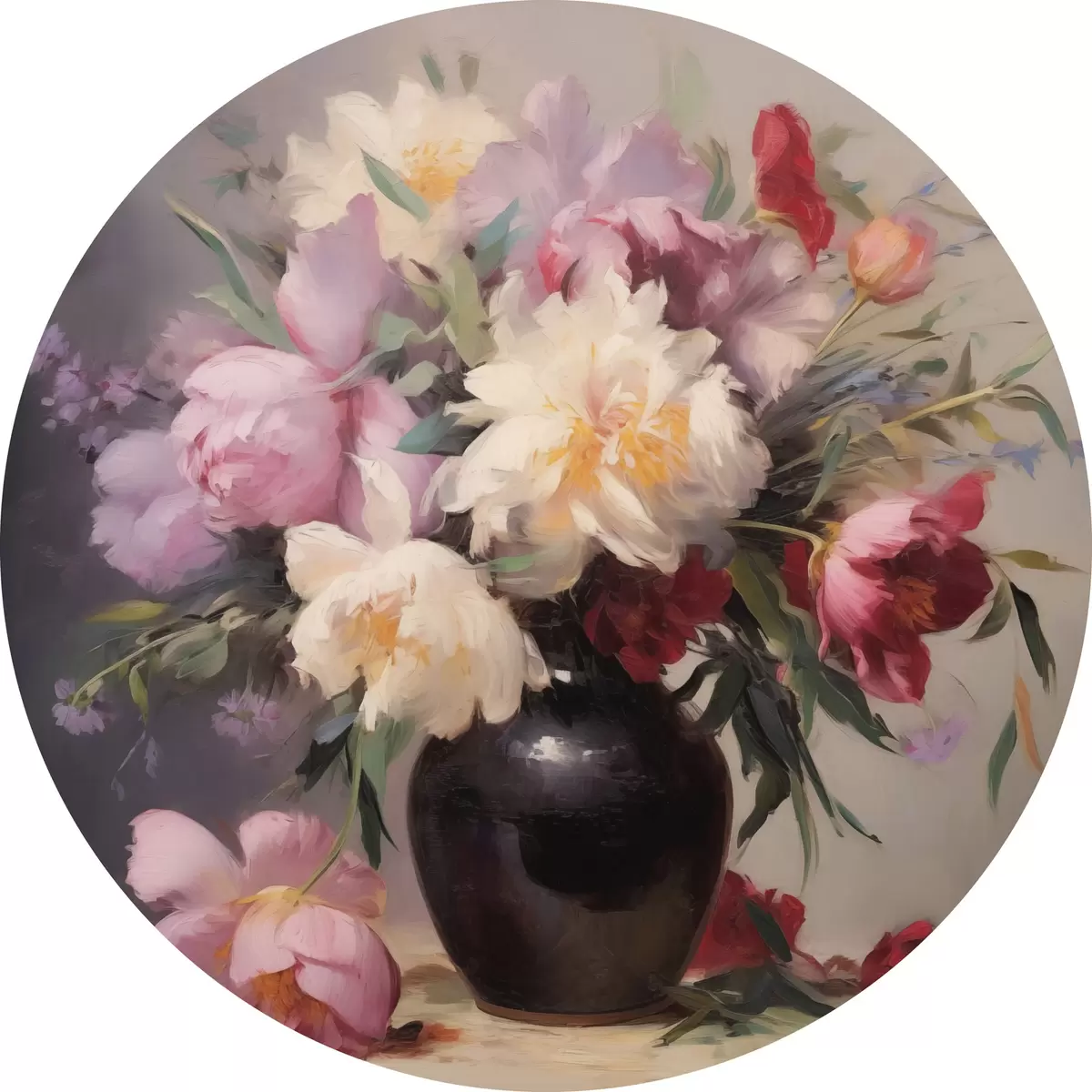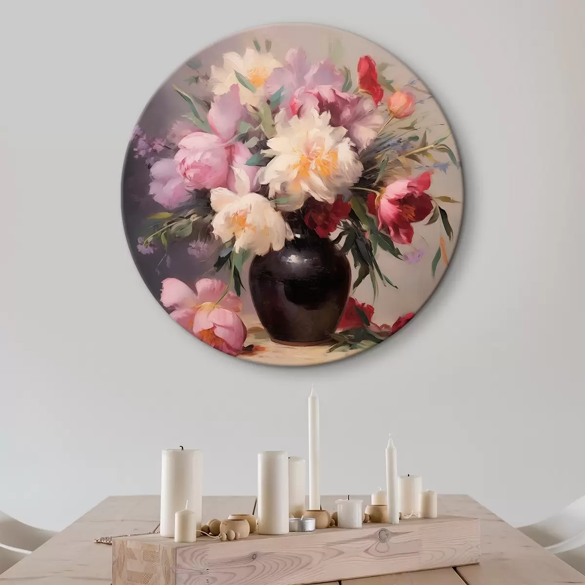 Apaļas gleznas Peoniju pušķis tumšā vāzē r44769