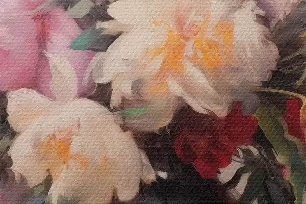 Apaļas gleznas Peoniju pušķis tumšā vāzē r44769
