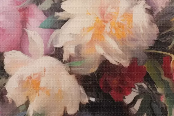 Smalkais diegu pinums uz šī audekla atgādina profesionālu mākslinieku audeklu virsmu.