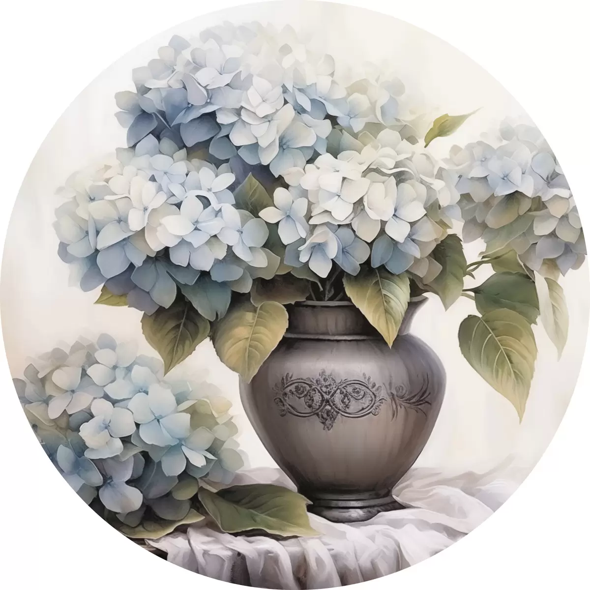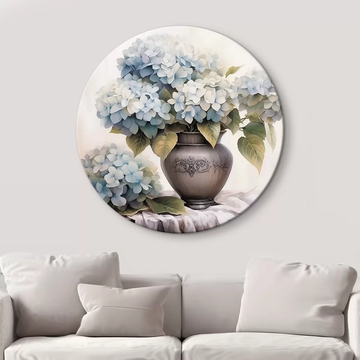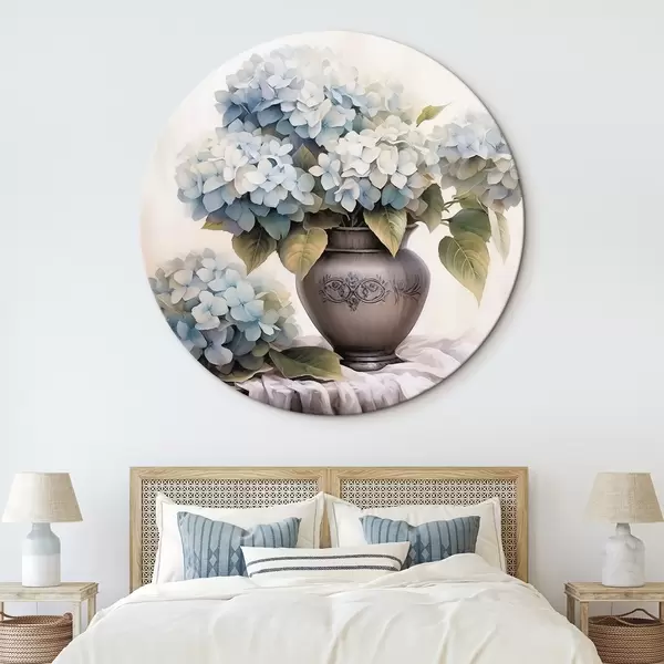 Apaļas gleznas Hortenziju ziedi vāzē r44771