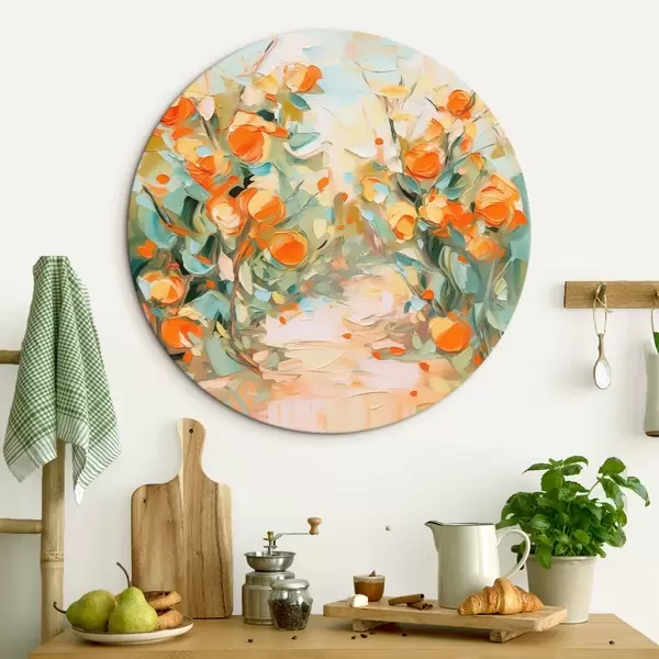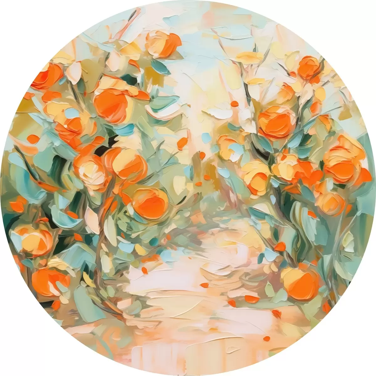 Apaļas gleznas Abstraktā apelsīnu birzs imitācija glezniecība r44772