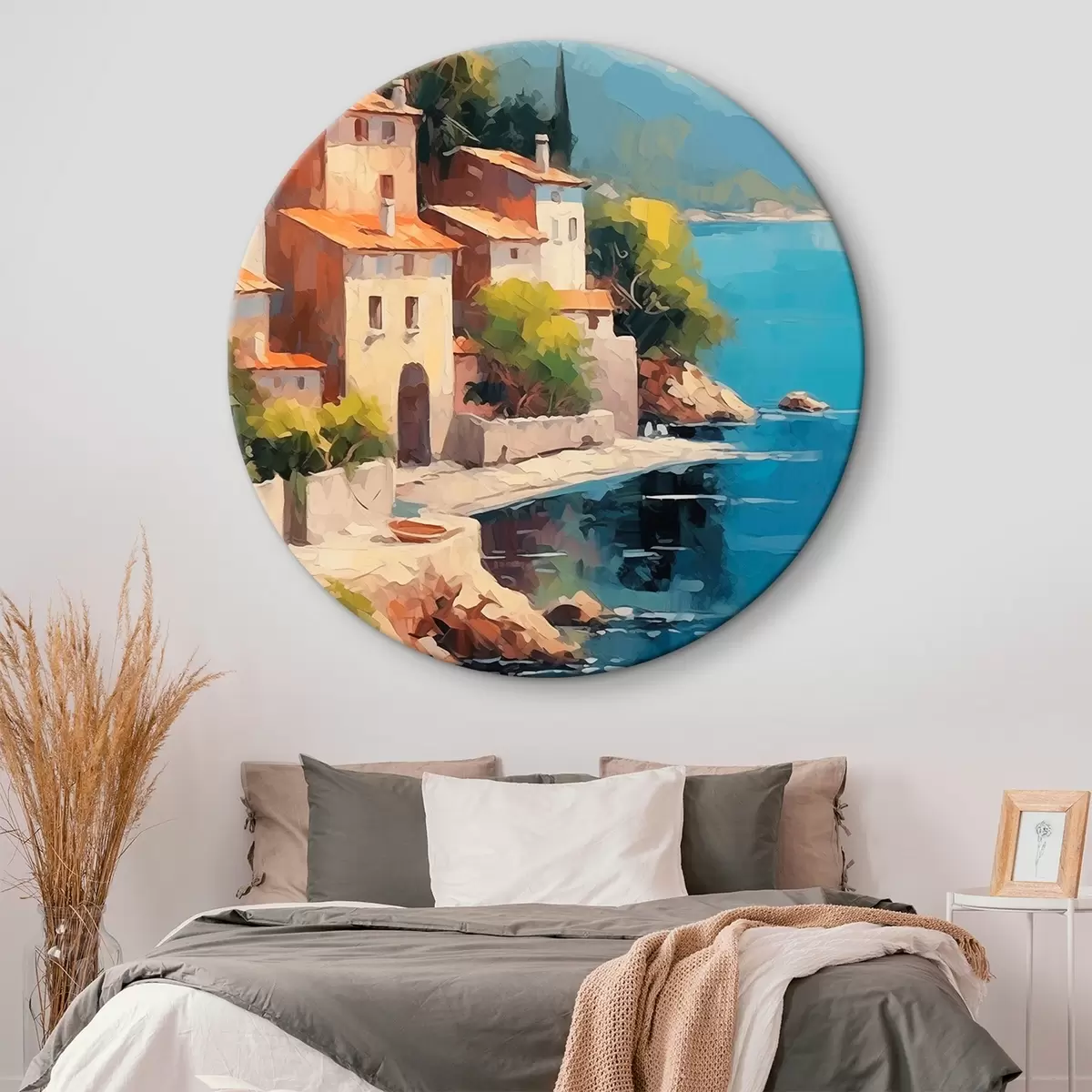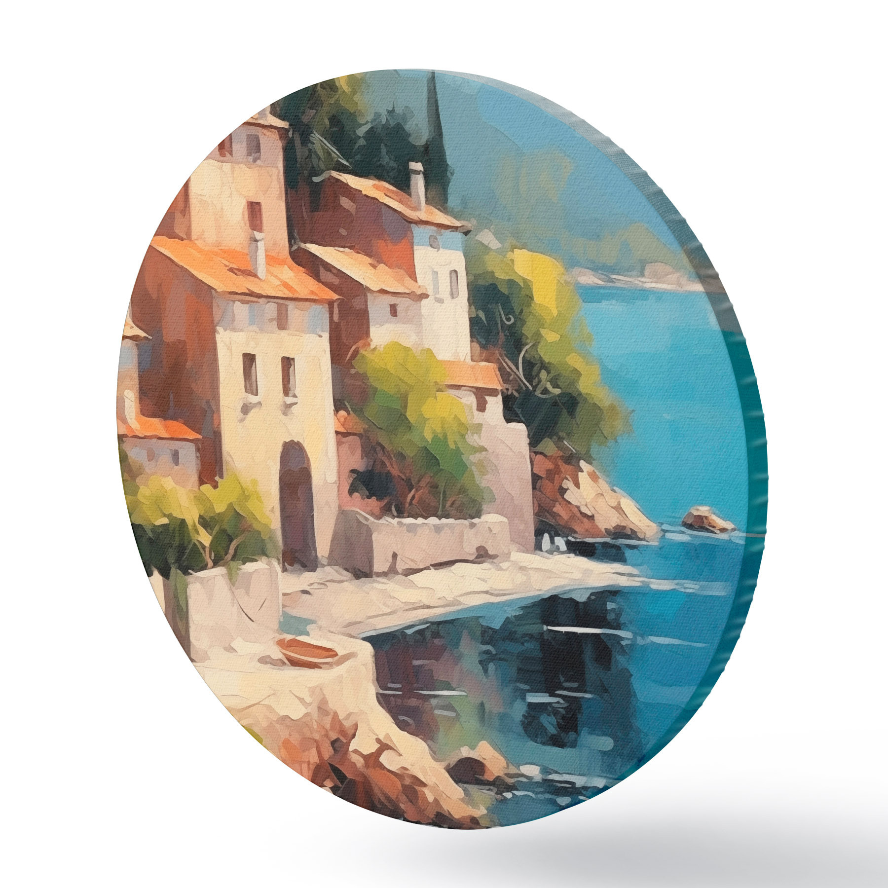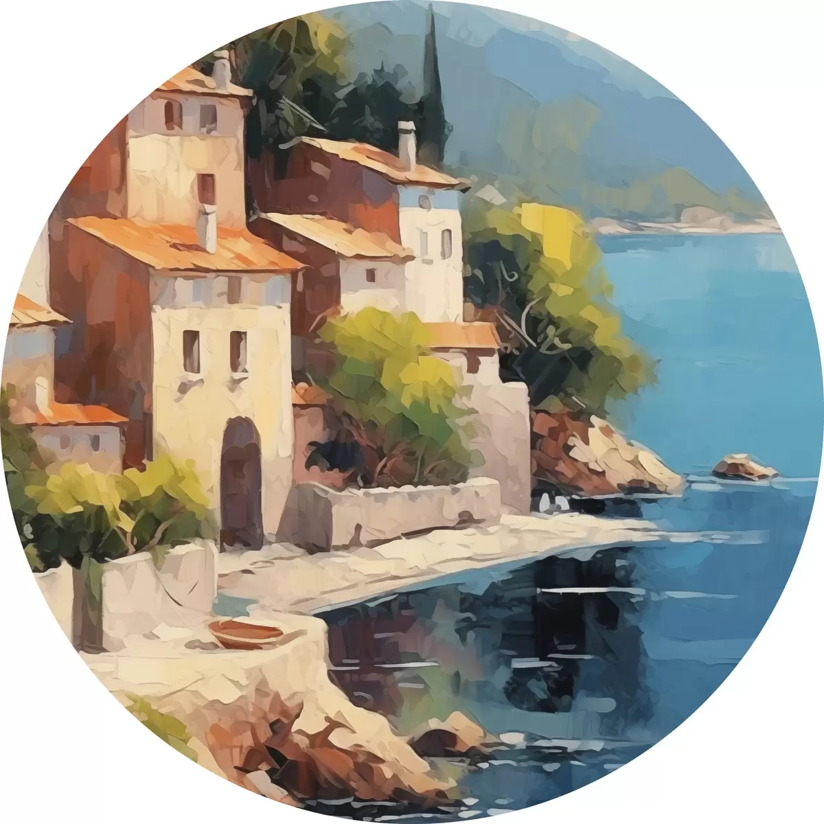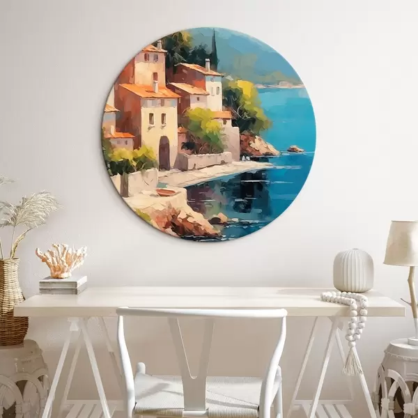 Apaļas gleznas Mājas pie līča Glezniecības imitācija r44773