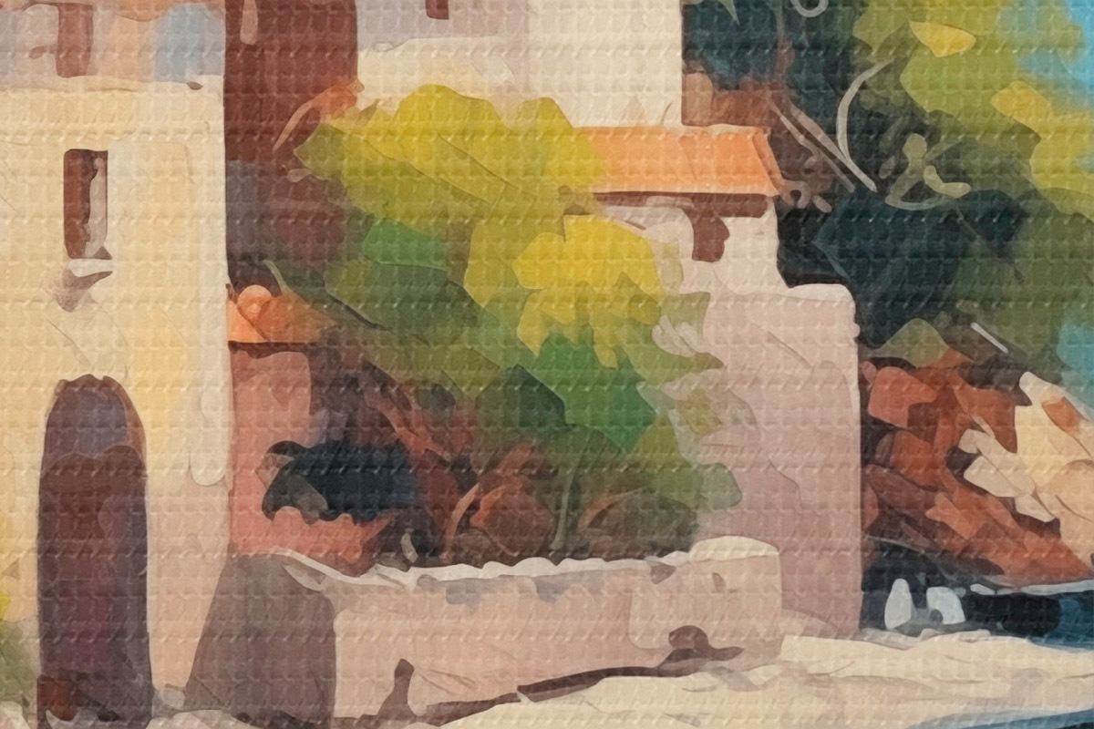 Smalkais diegu pinums uz šī audekla atgādina profesionālu mākslinieku audeklu virsmu.
