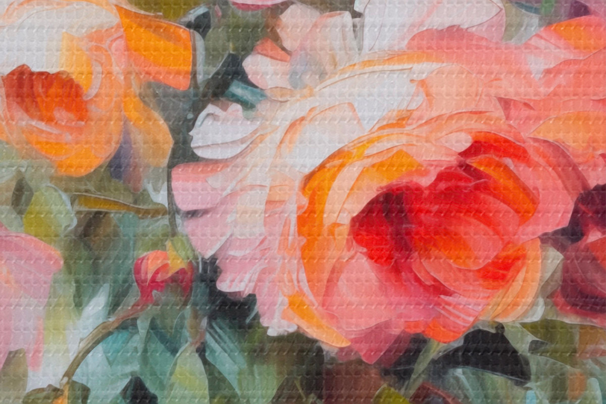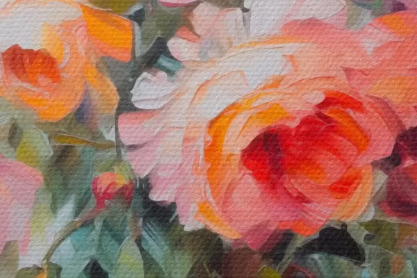 Smalkais diegu pinums uz šī audekla atgādina profesionālu mākslinieku audeklu virsmu.