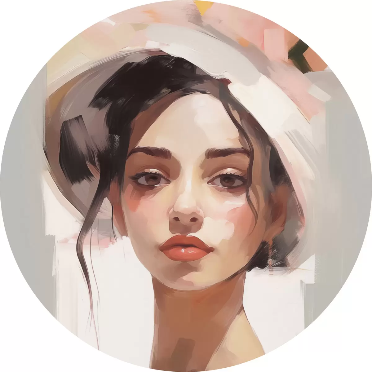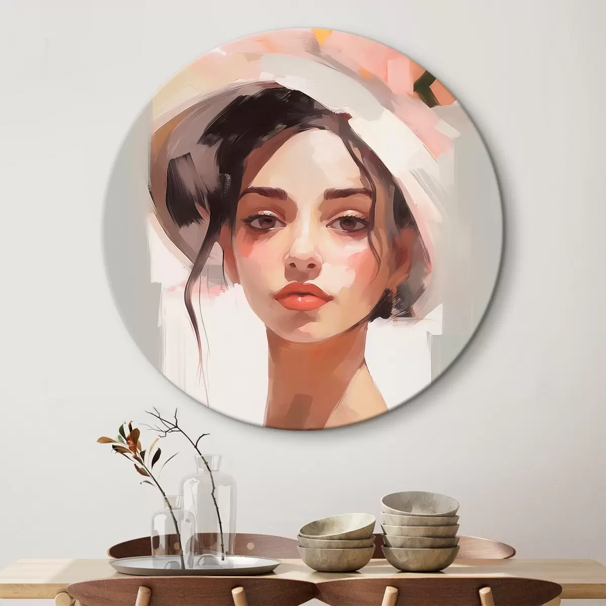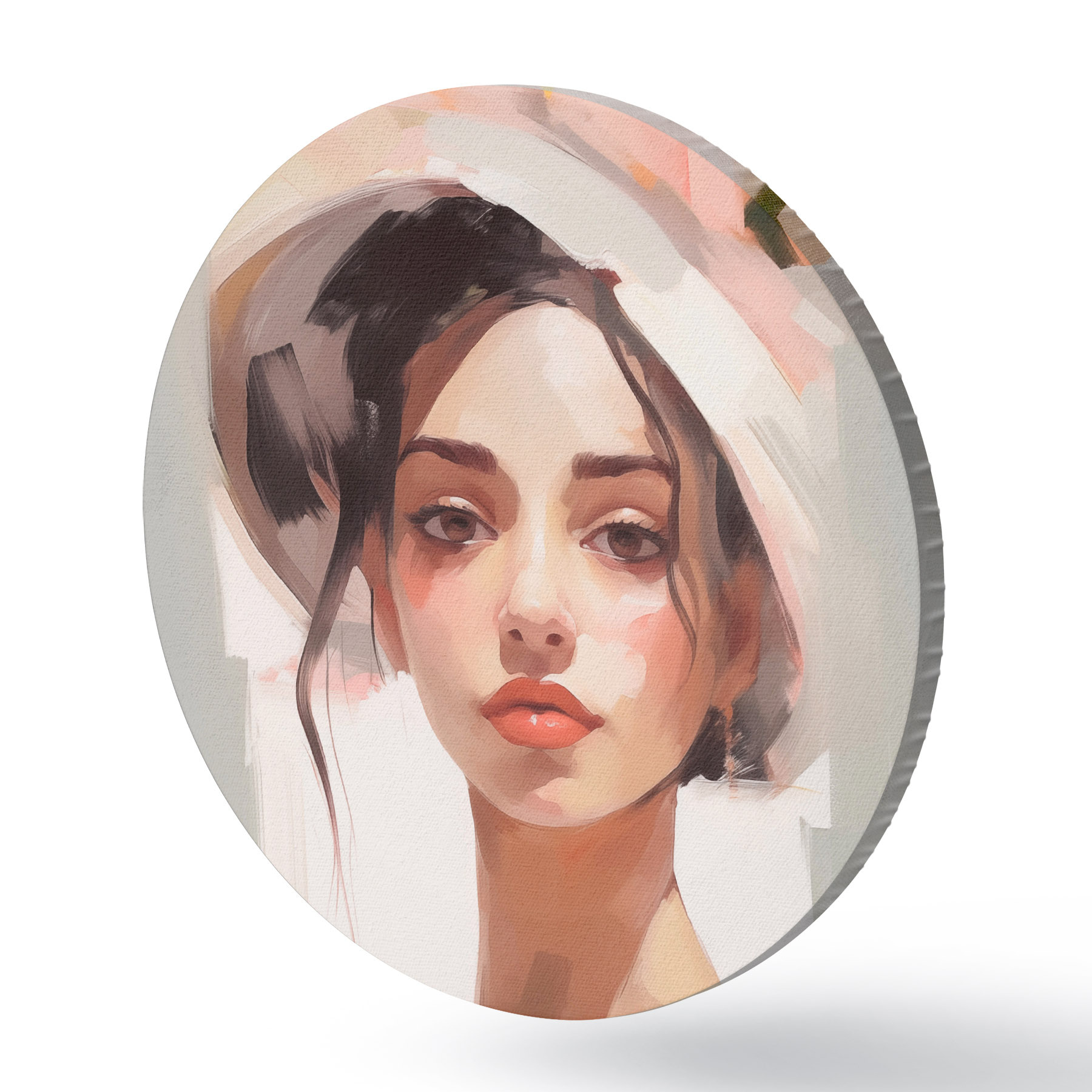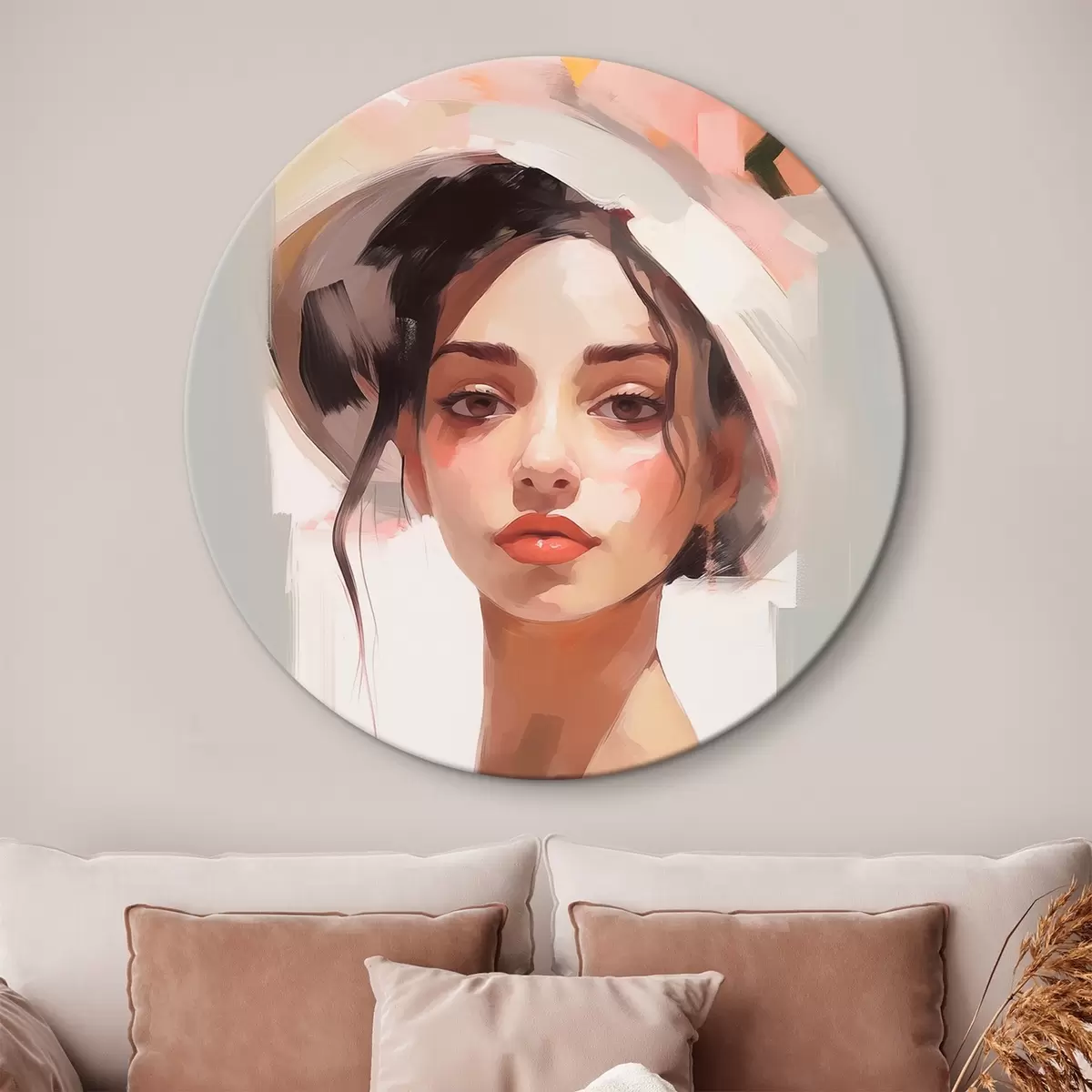 Apaļas gleznas Meitene cepurē glezniecības imitācija r44778