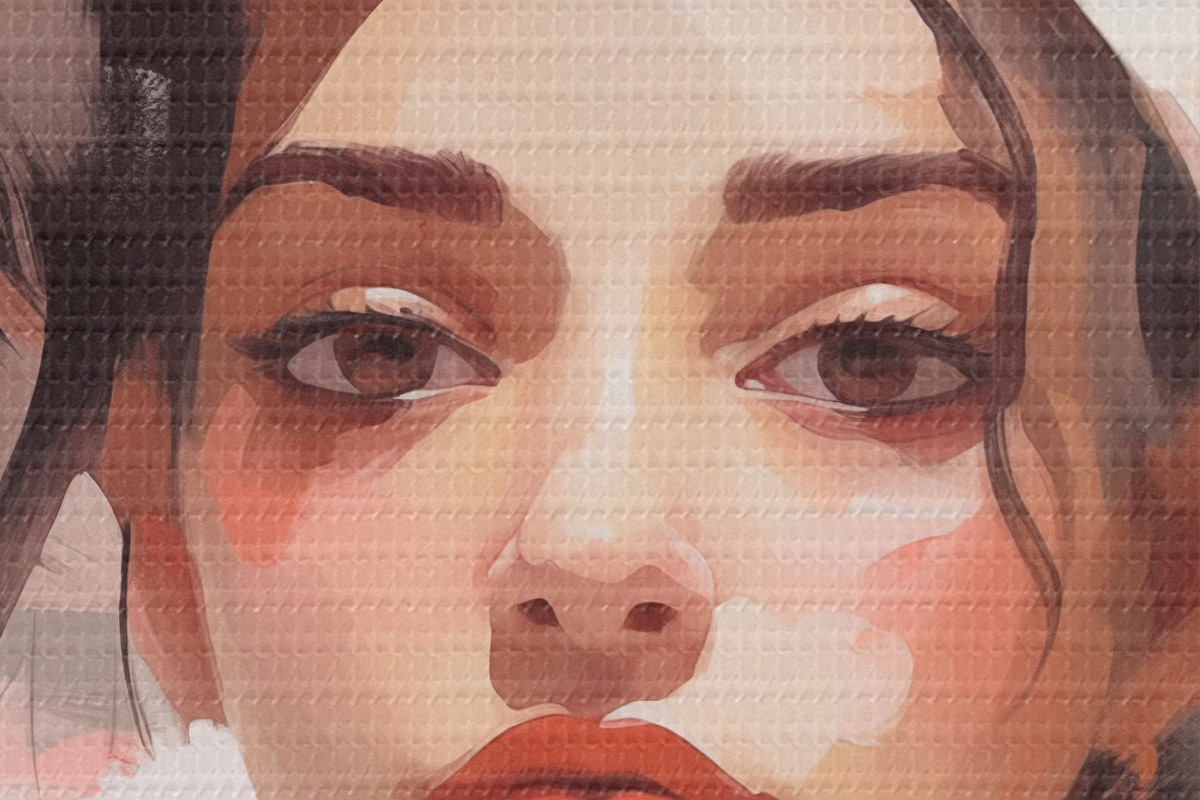 Smalkais diegu pinums uz šī audekla atgādina profesionālu mākslinieku audeklu virsmu.