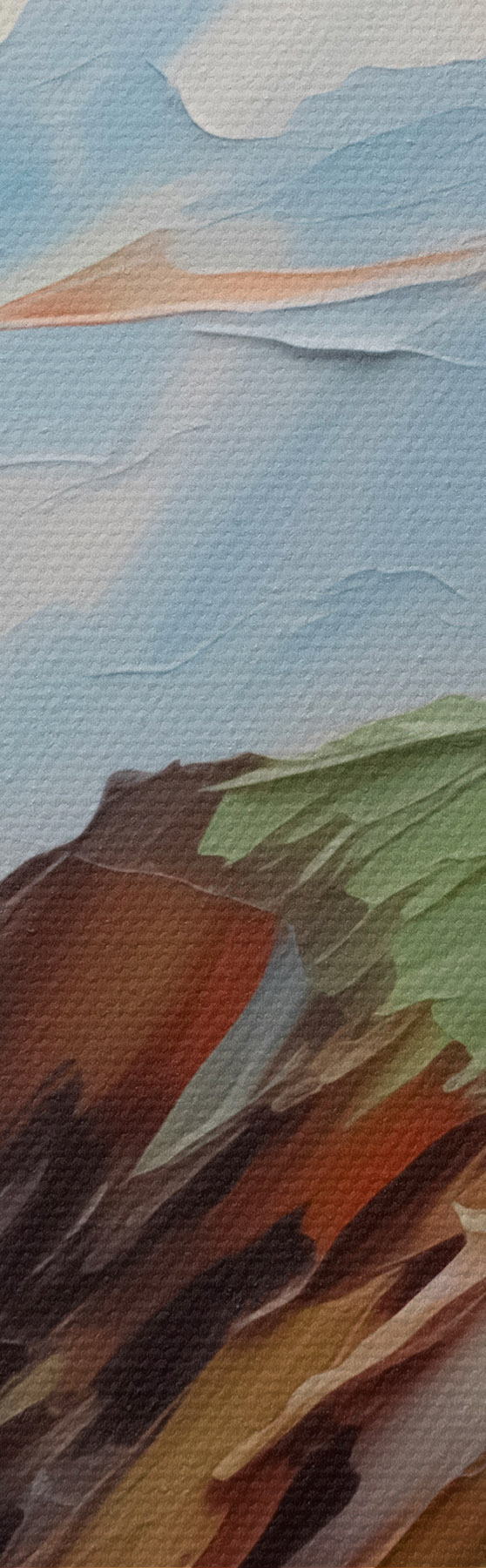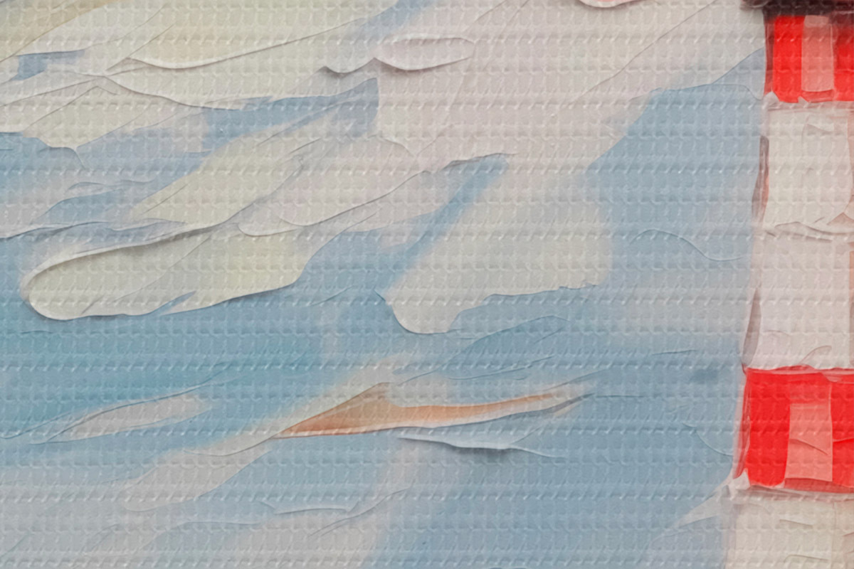 Smalkais diegu pinums uz šī audekla atgādina profesionālu mākslinieku audeklu virsmu.