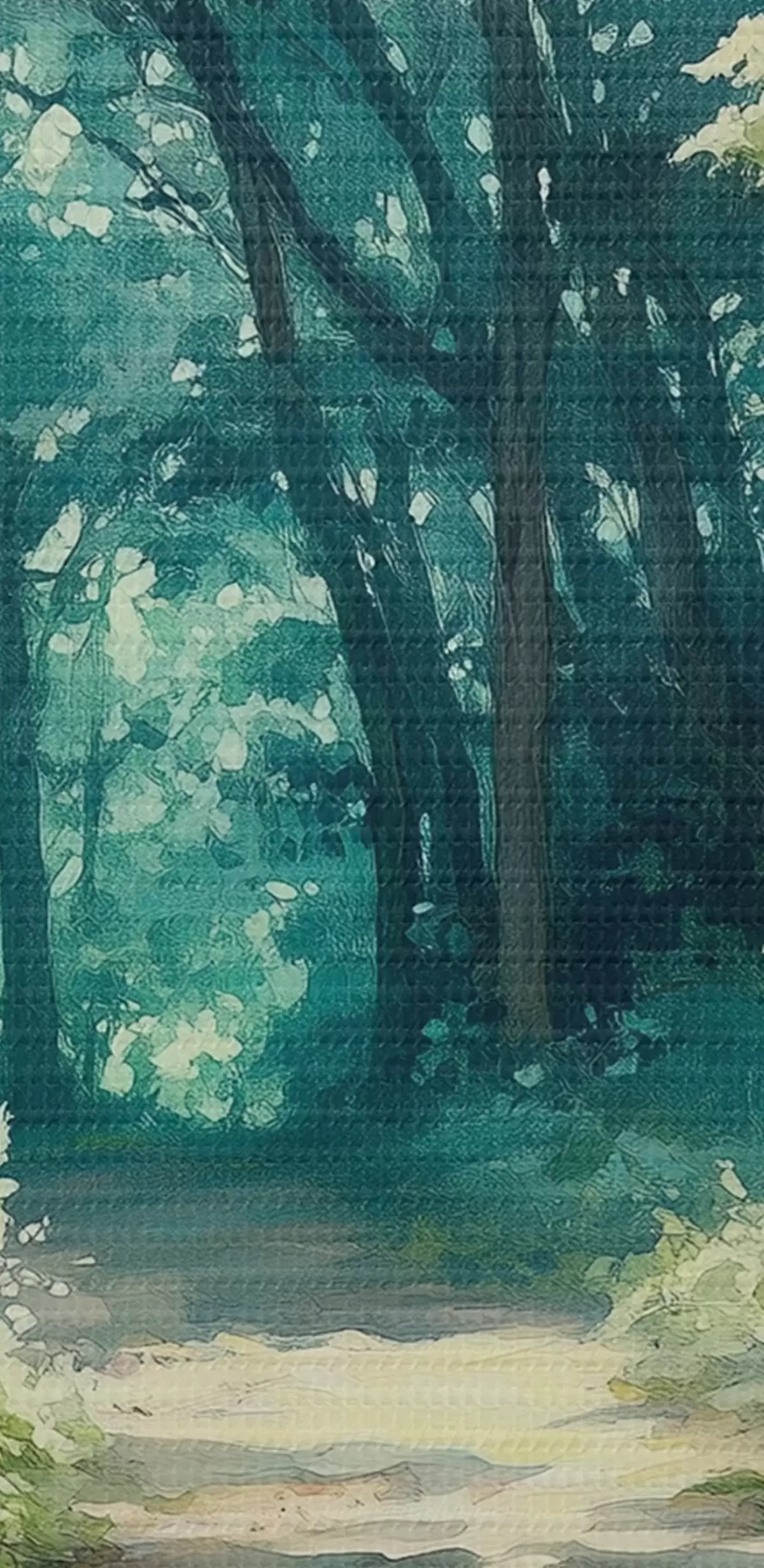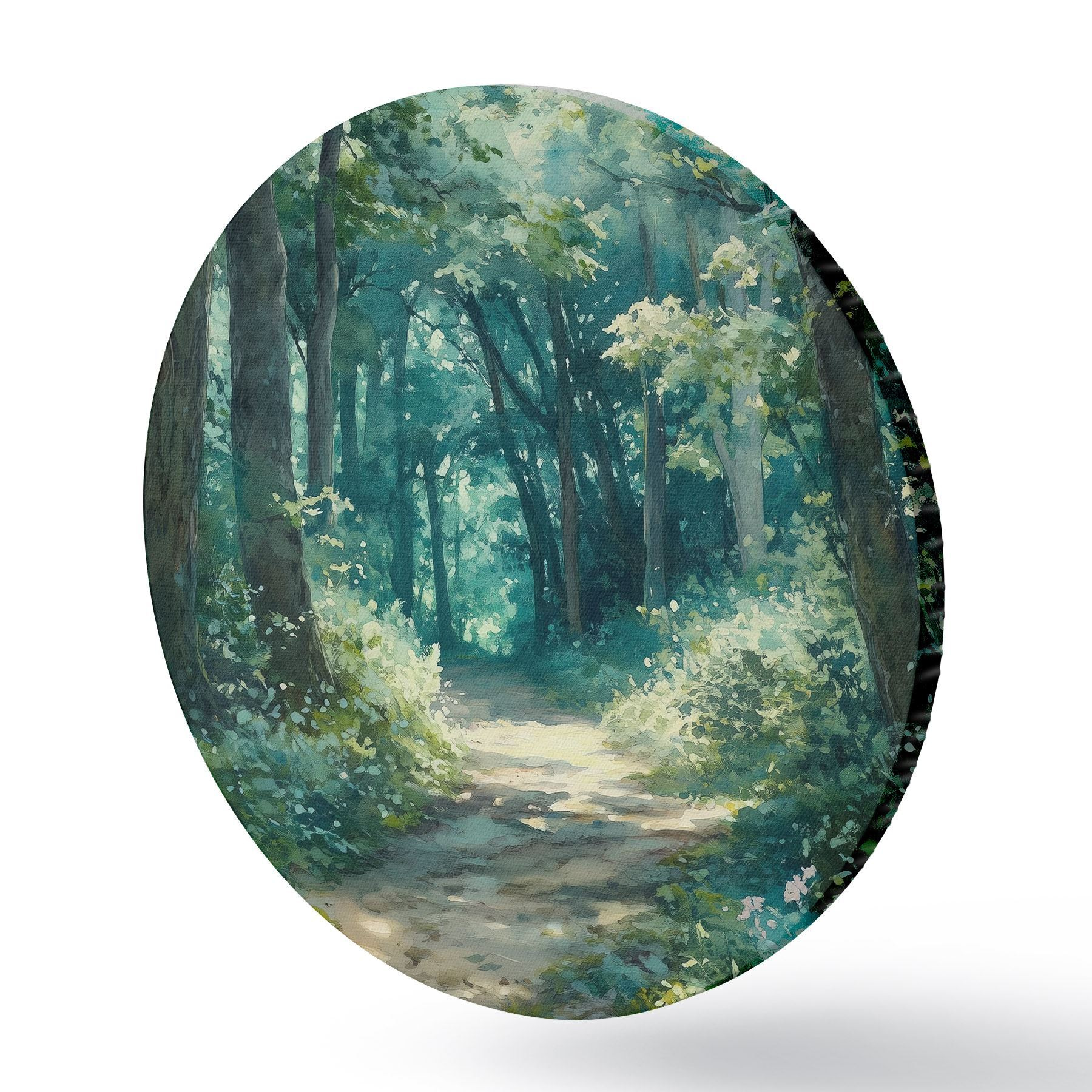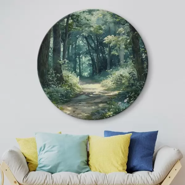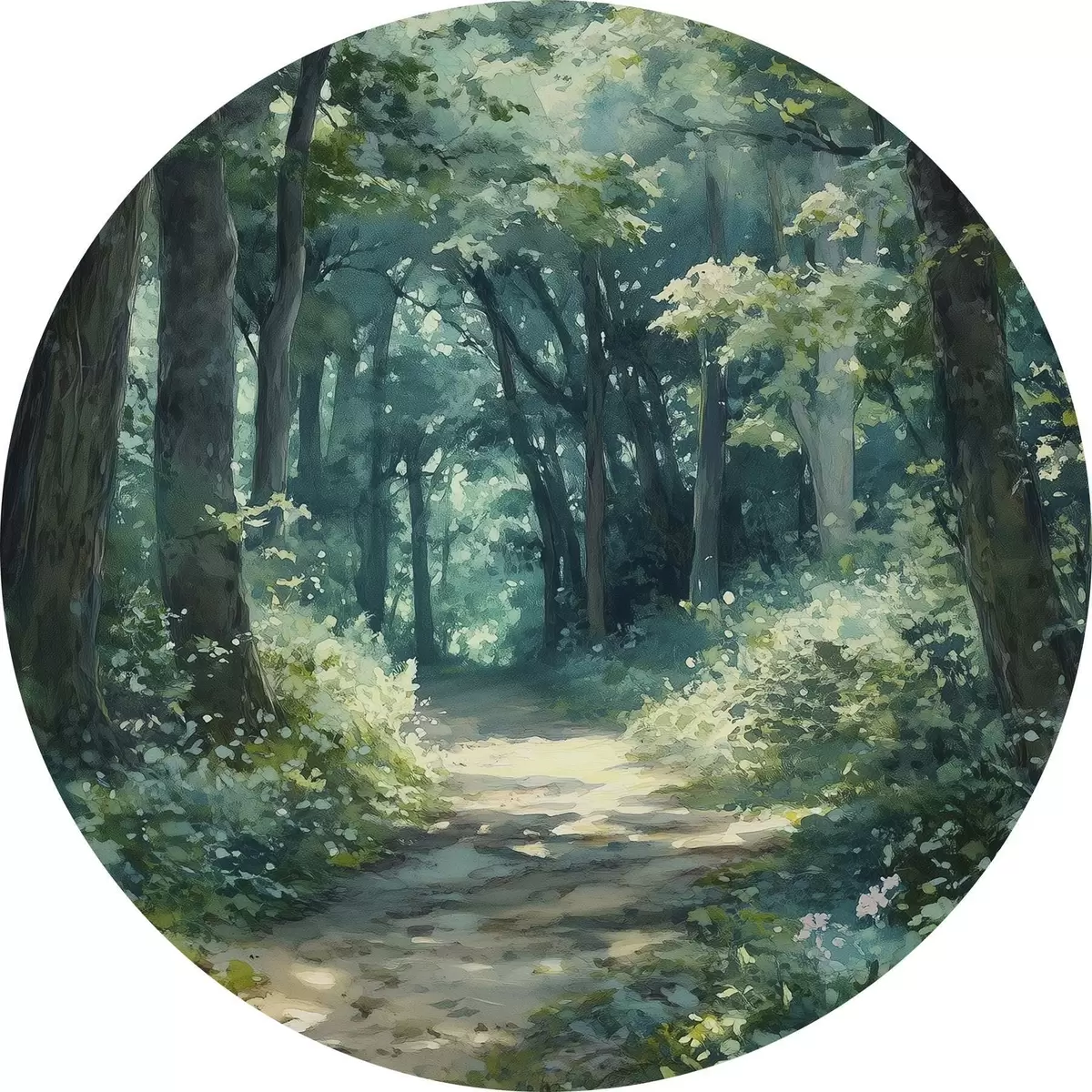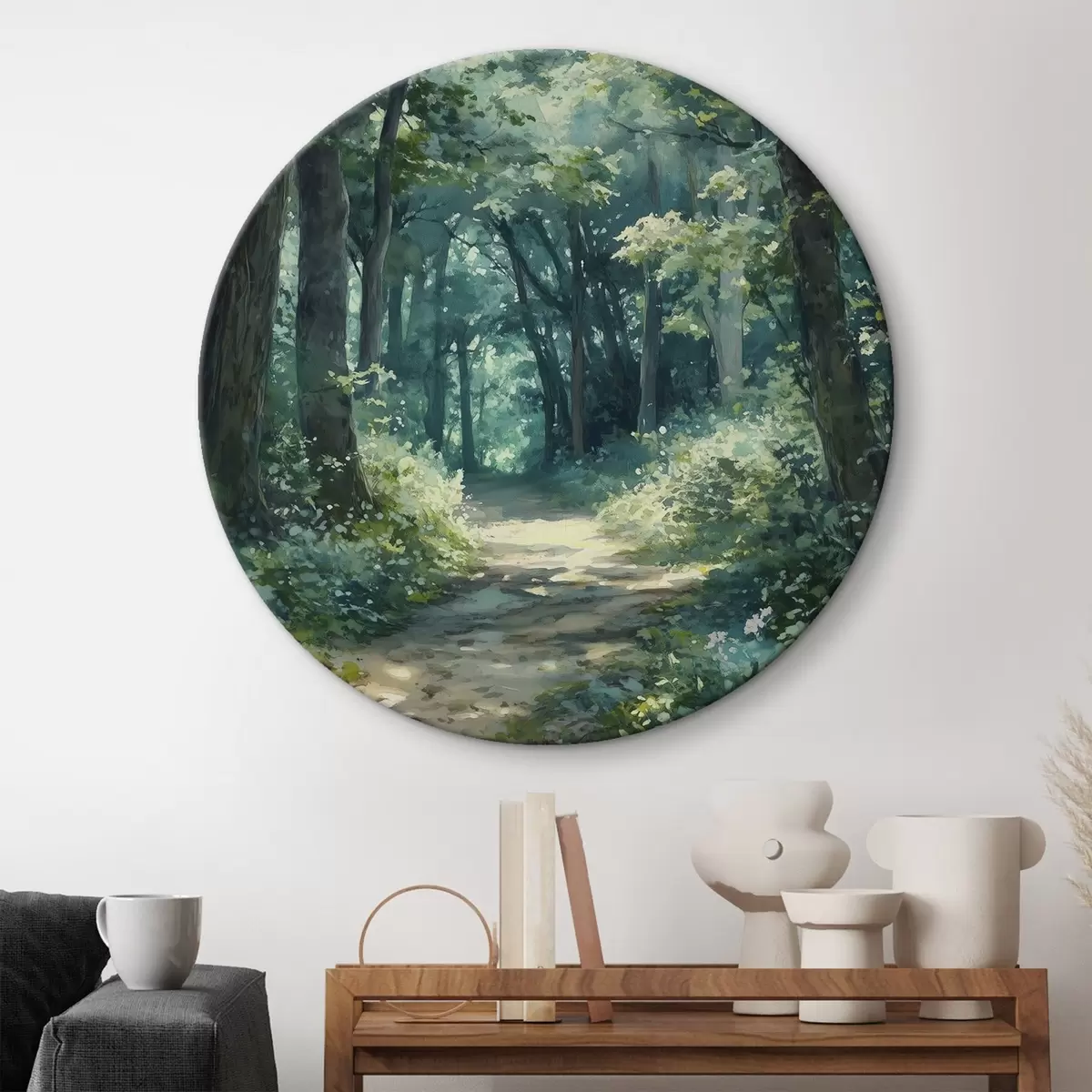 Apaļas gleznas Zaļš mežs ar kokiem un saules gaismu r44784