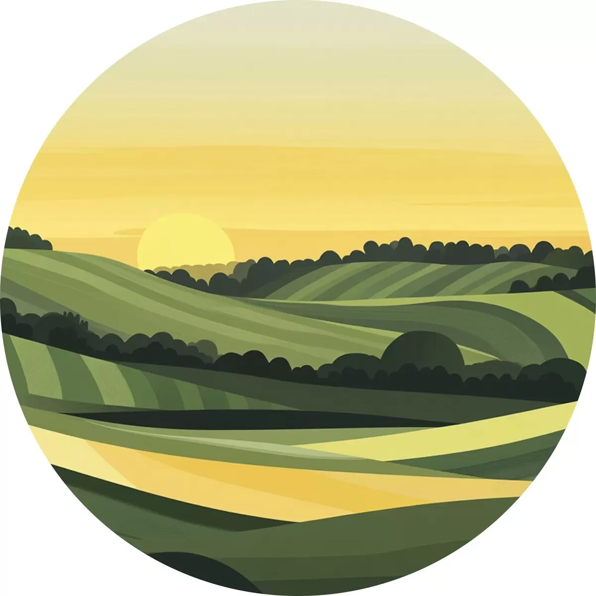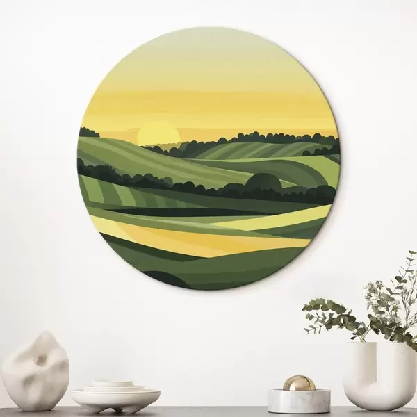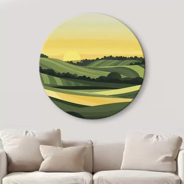 Apaļas gleznas Abstraktas ainavas ar kalniem un saulrietu r44785