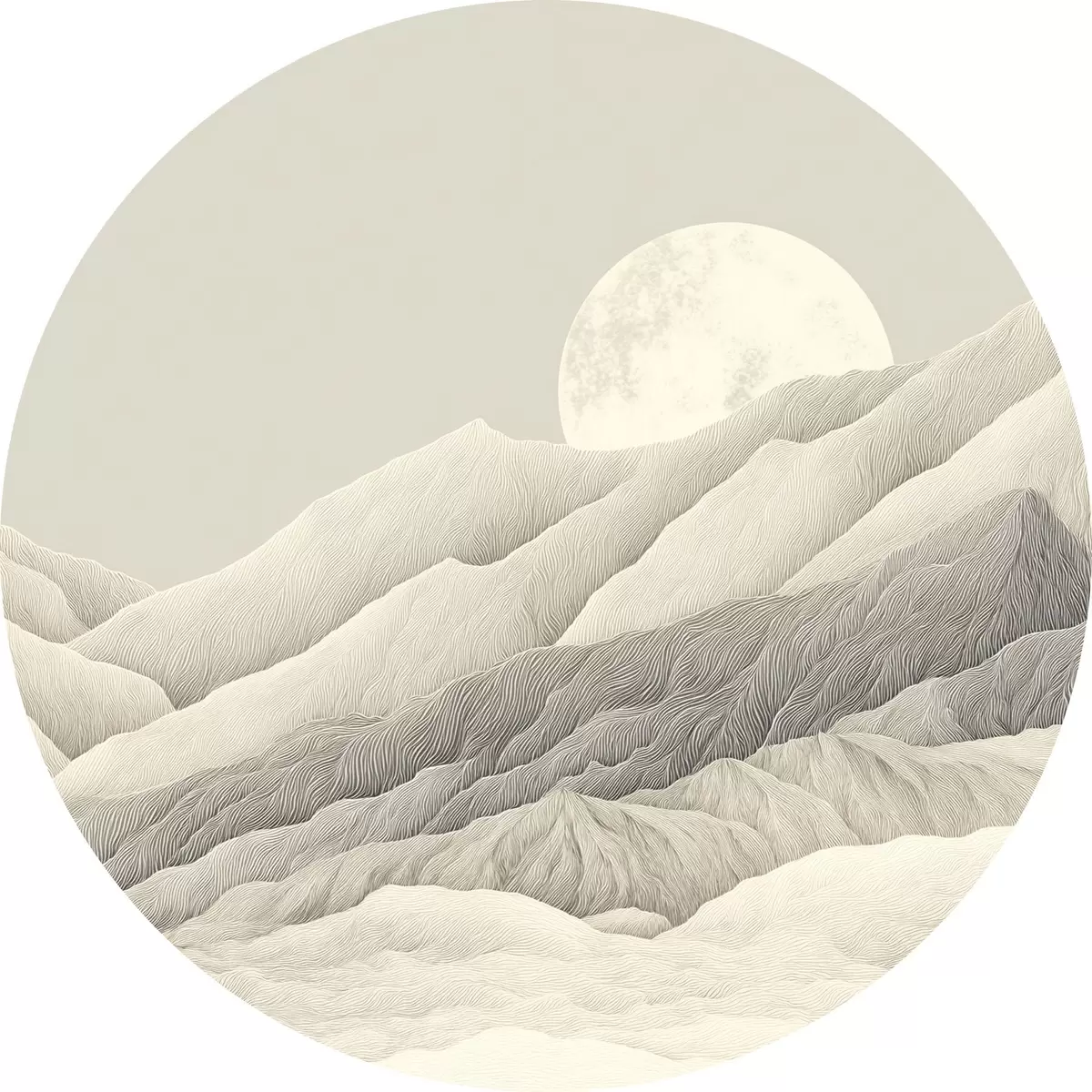 Apaļas gleznas Kalni ar mēnesi, detalizēts zīmējums r44788