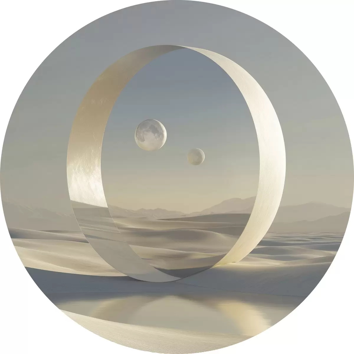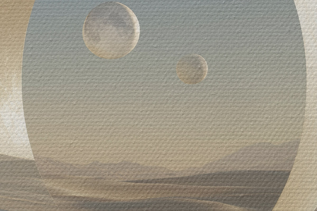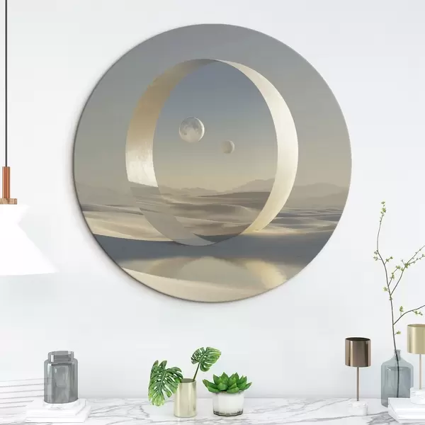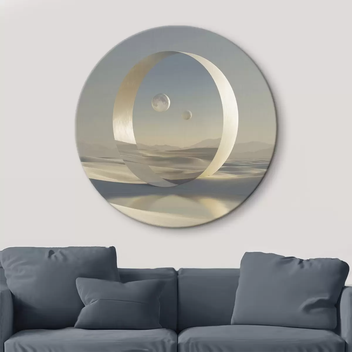 Apaļas gleznas Futūristiska ainava ar kāpām un planētām r44791