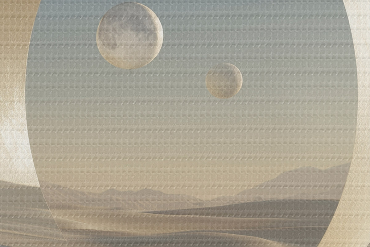 Attēls Futūristiska ainava ar kāpām un planētām Nr r44791