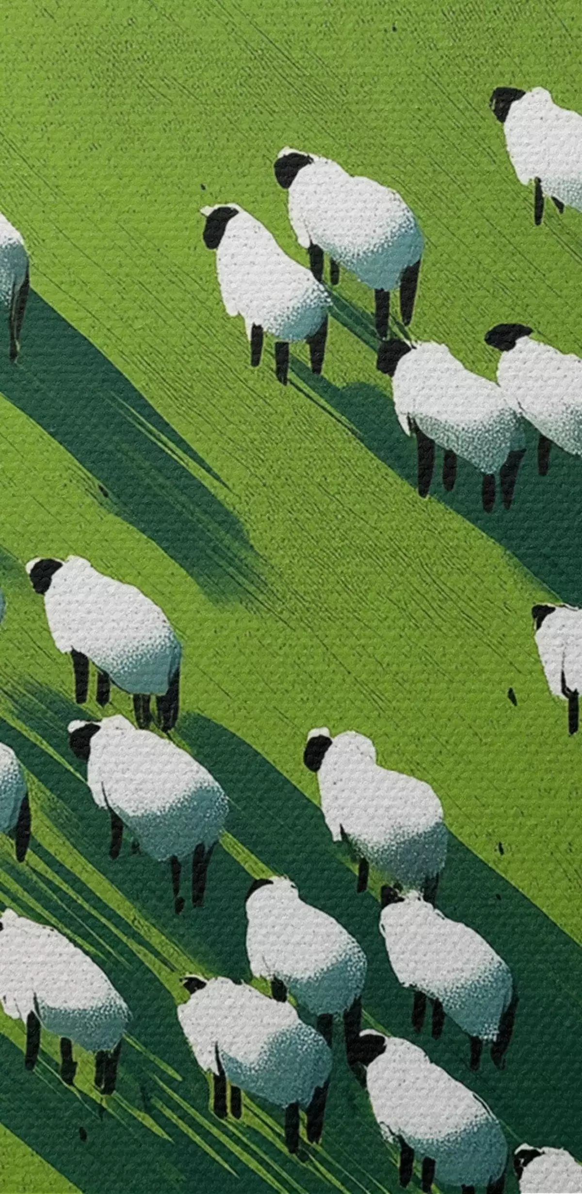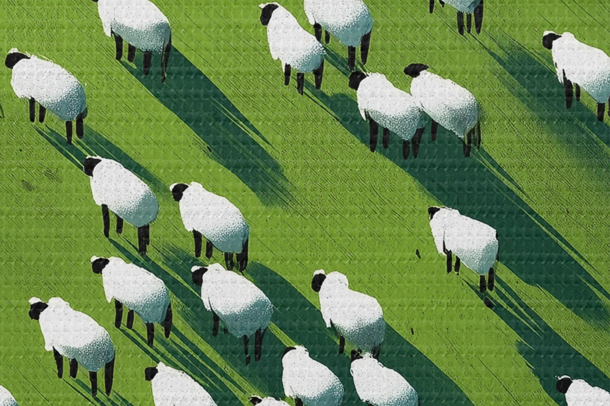 Attēls Zaļš lauks ar aitu ganāmpulku, abstrakcija, skats no gaisa Nr r44793