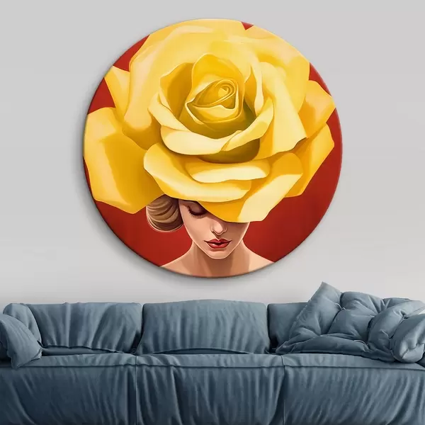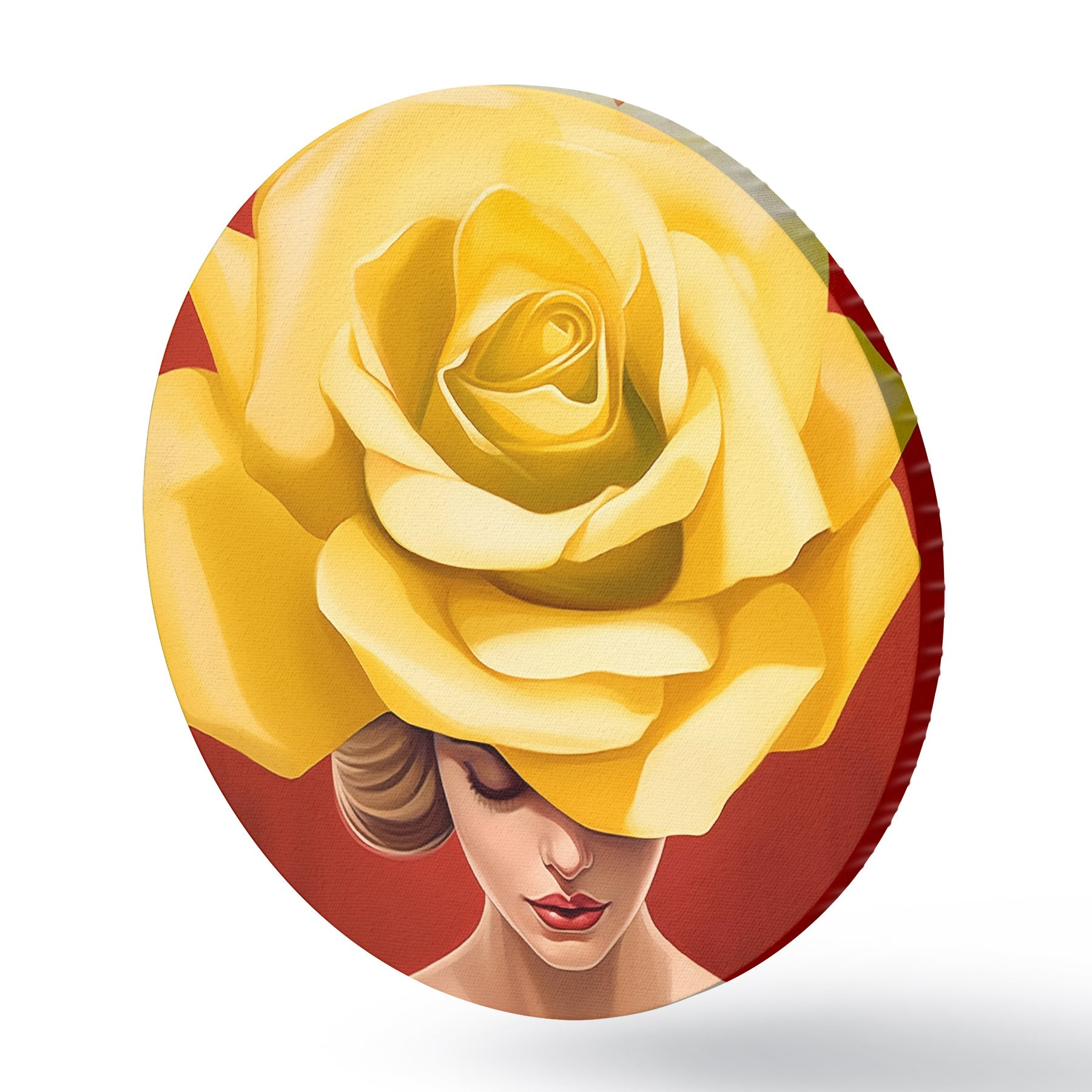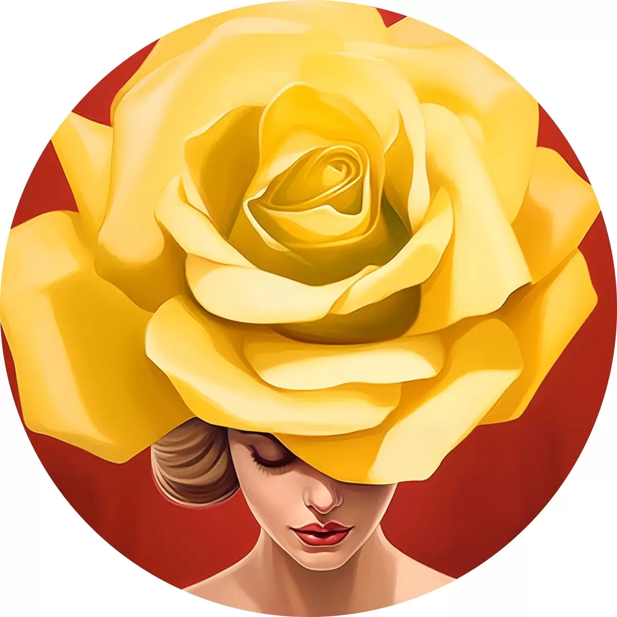 Apaļas gleznas Sieviete ar dzeltenu rožu cepuri r44800