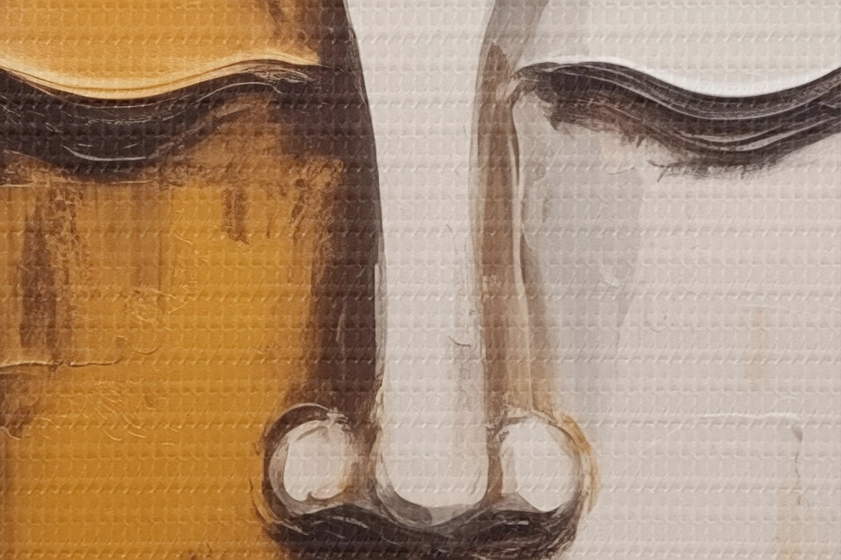 Smalkais diegu pinums uz šī audekla atgādina profesionālu mākslinieku audeklu virsmu.