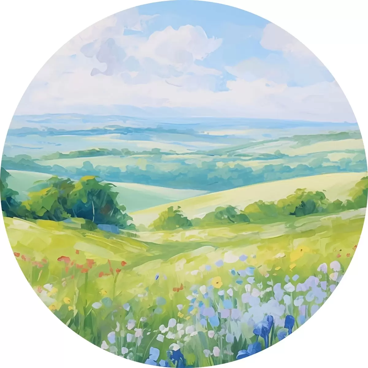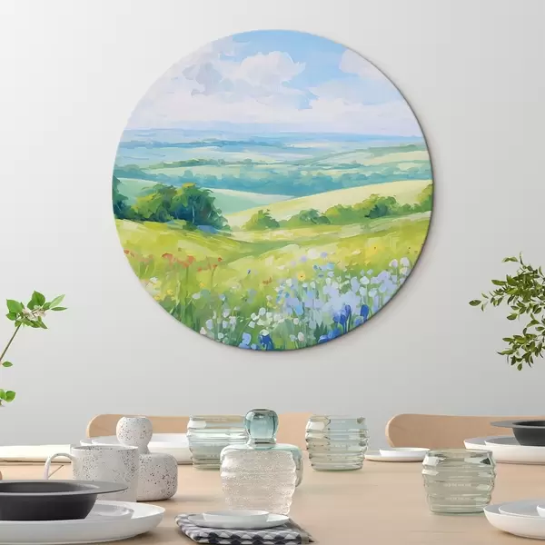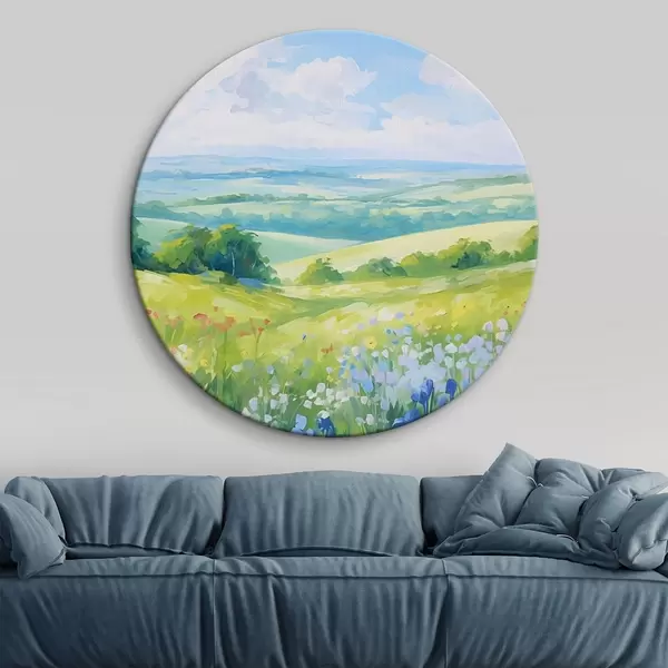 Apaļas gleznas Ziedošs kalns ar skatu uz vasaru r44813