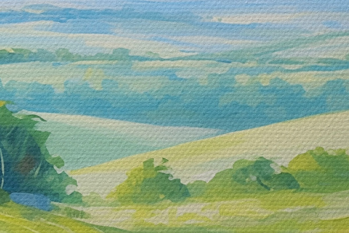 Smalkais diegu pinums uz šī audekla atgādina profesionālu mākslinieku audeklu virsmu.