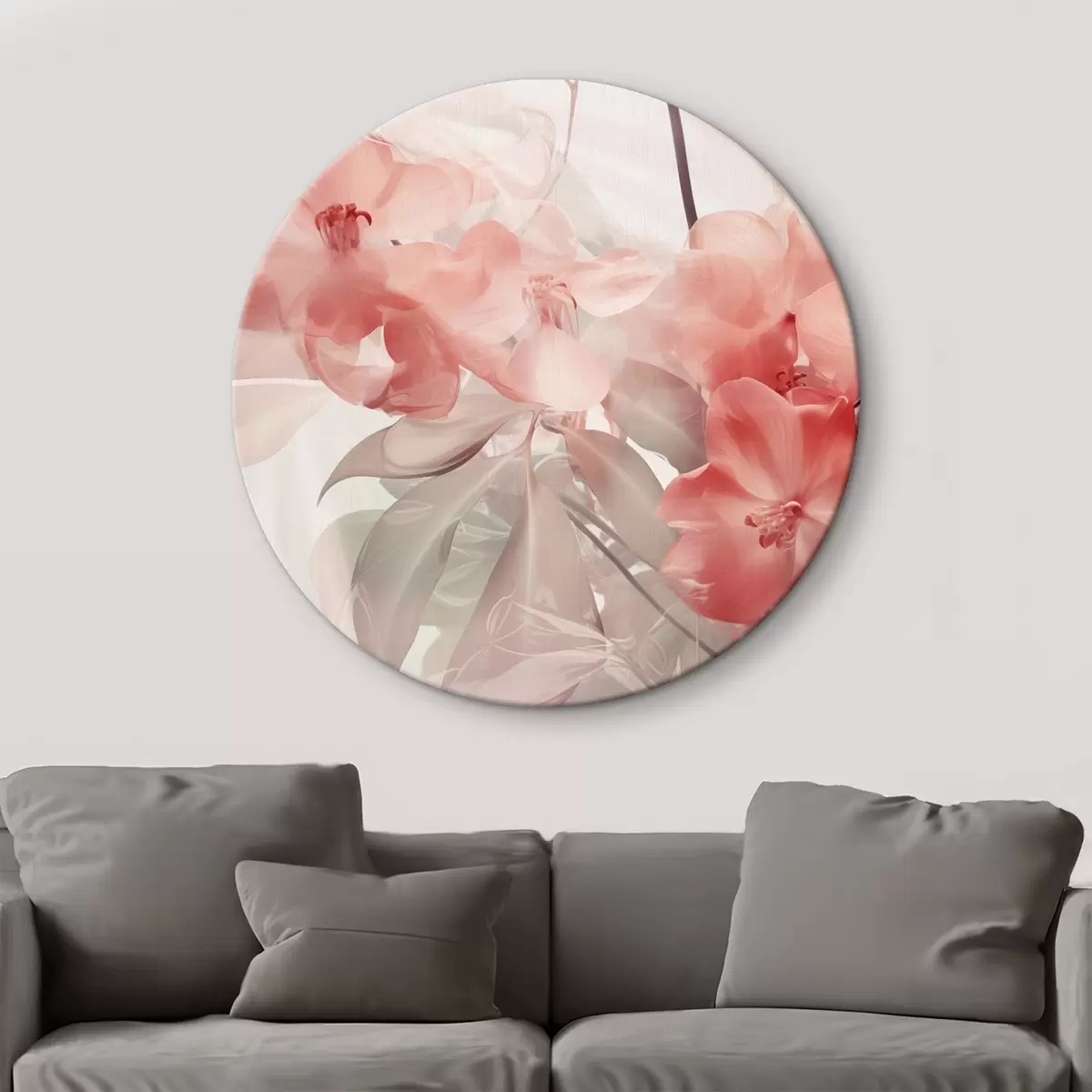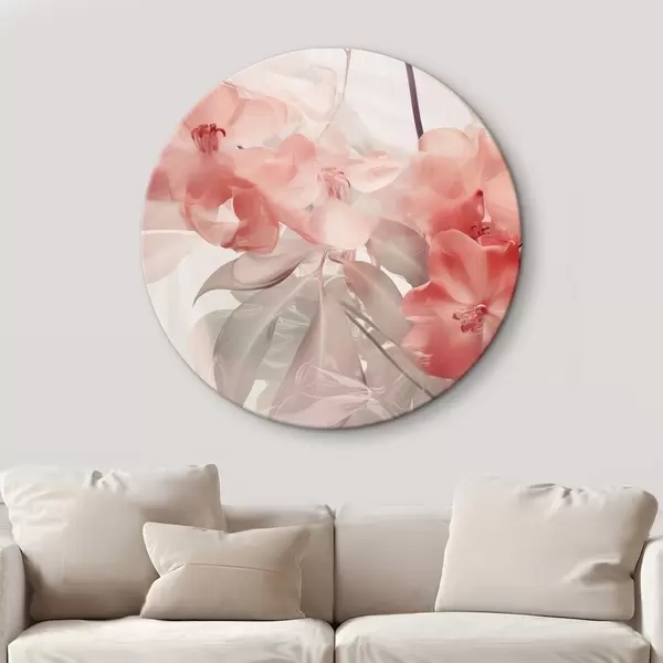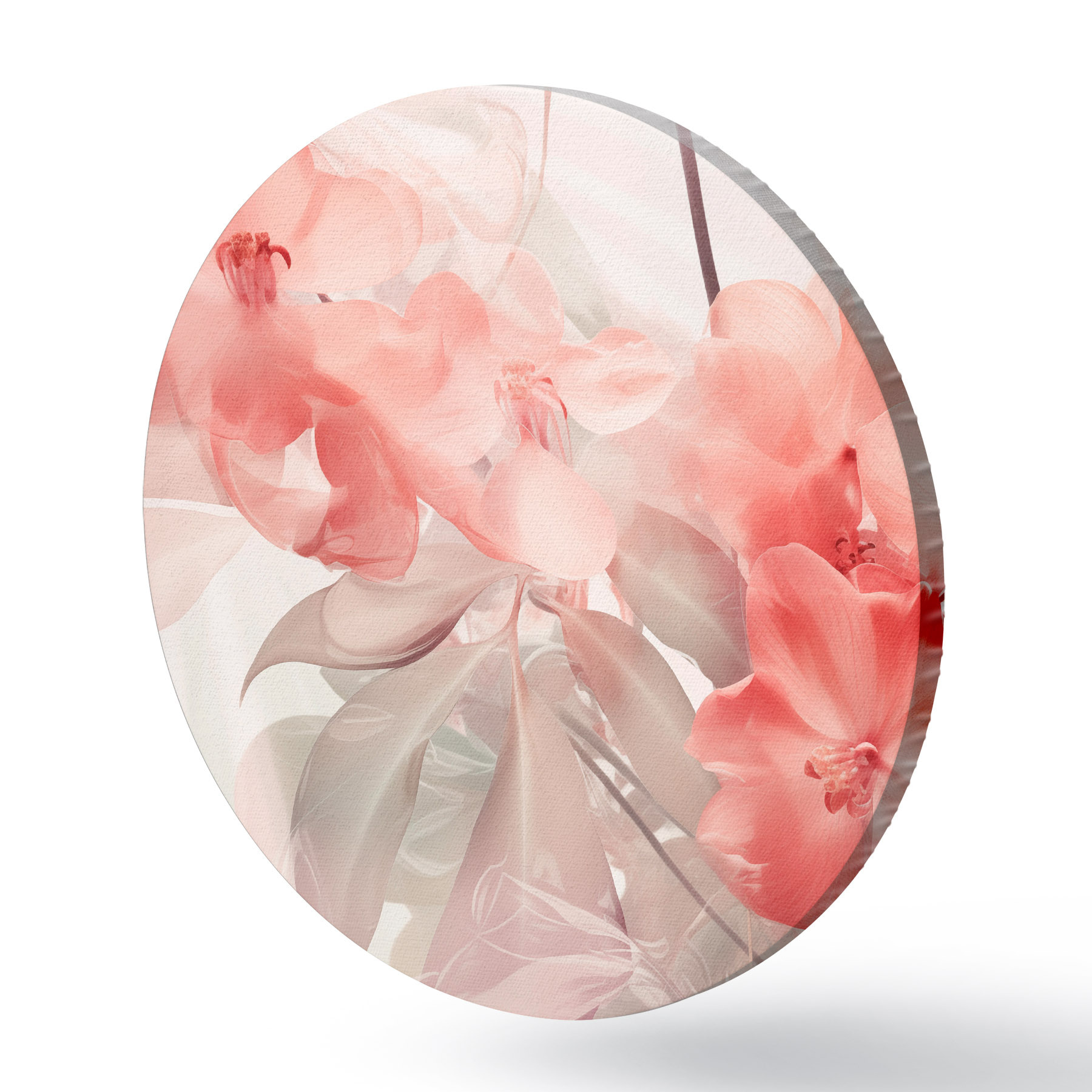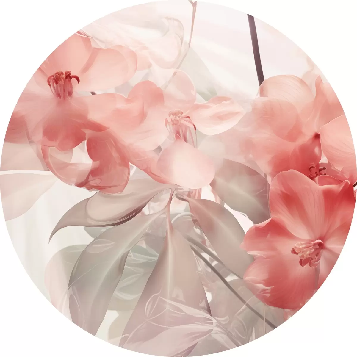 Apaļas gleznas Dzirkstoši rozā tropu ziedi ar maigām, maigi zaļām lapām, veidojot sapņaini maigu tekstūru r44861