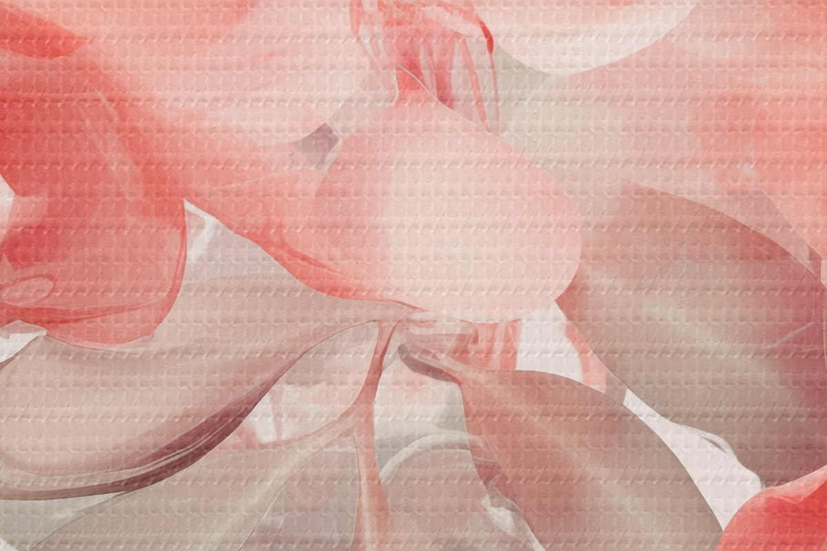 Attēls Dzirkstoši rozā tropu ziedi ar maigām, maigi zaļām lapām, veidojot sapņaini maigu tekstūru Nr r44861