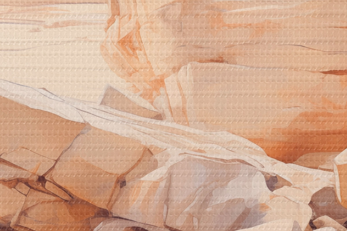 Attēls Minimālistiska akmeņaina pludmales ainava ar lieliem gaiši brūniem laukakmeņiem un dzidru ūdeni Nr r44865