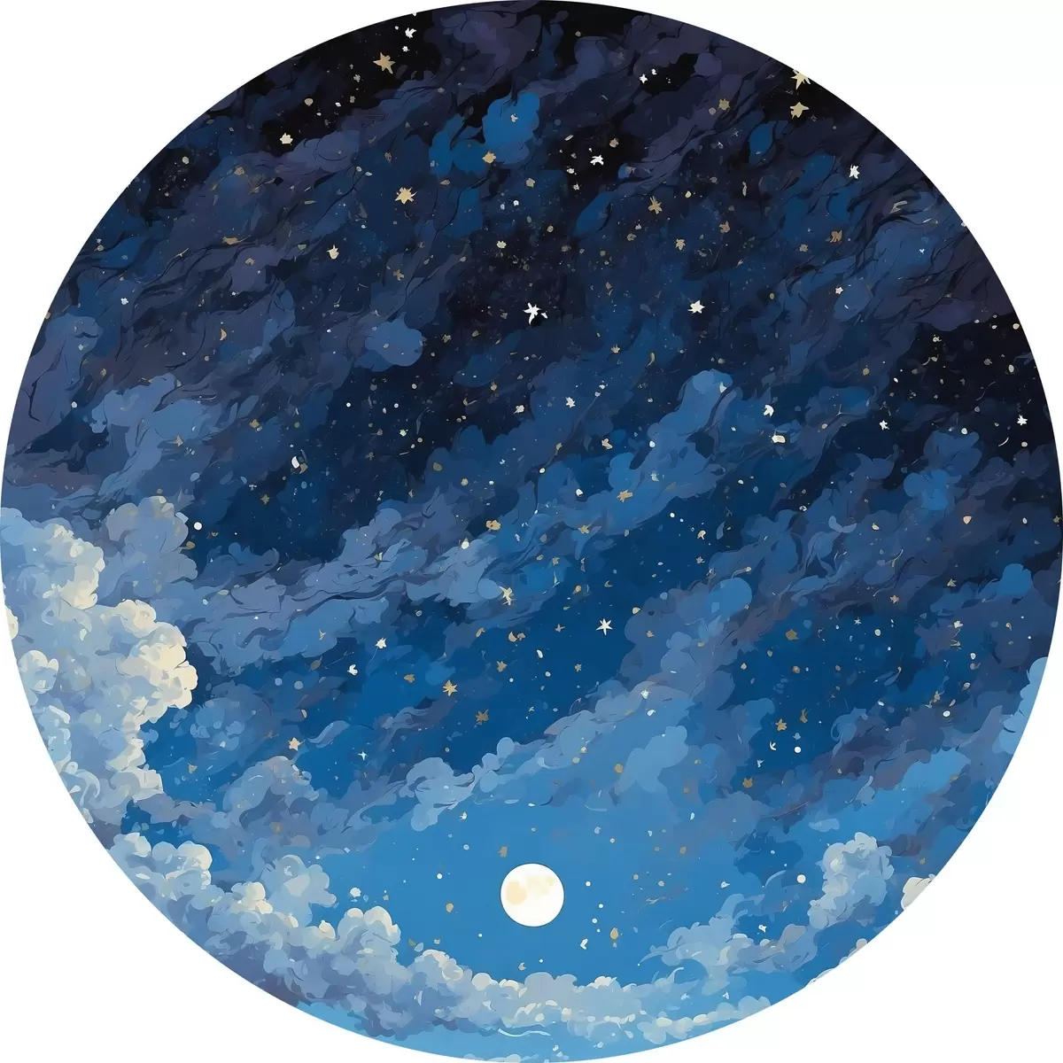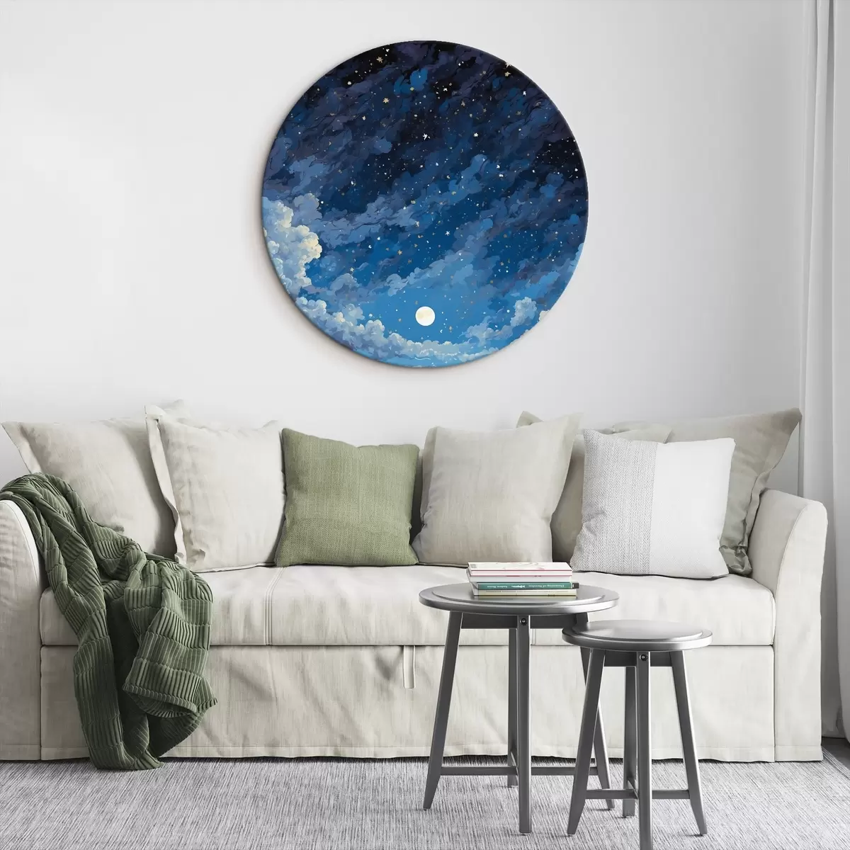 Apaļas gleznas Nakts debesis ar mēnesi un zvaigznēm virs kalnu ainavas r44872