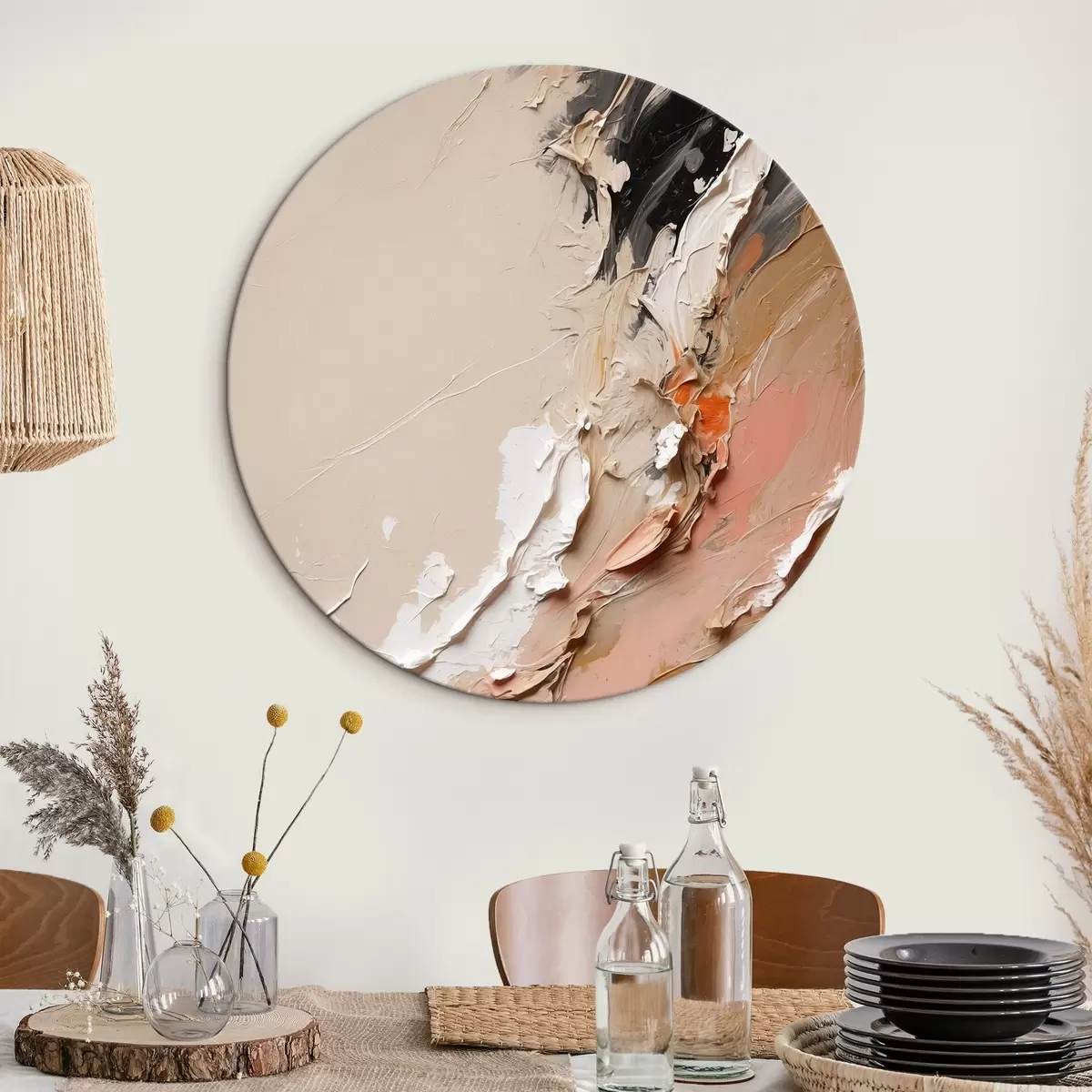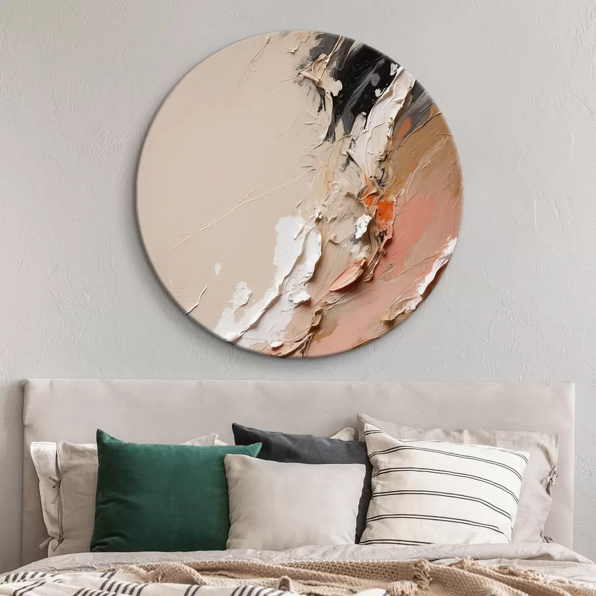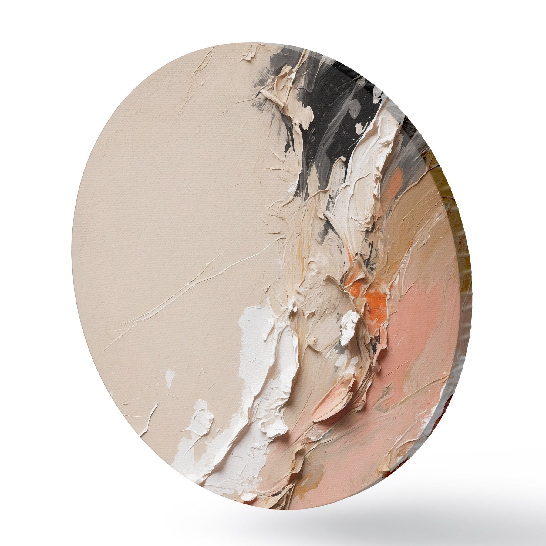 Apaļas gleznas Bēša un melna abstrakcija ar rozā un baltiem akcentiem r44875