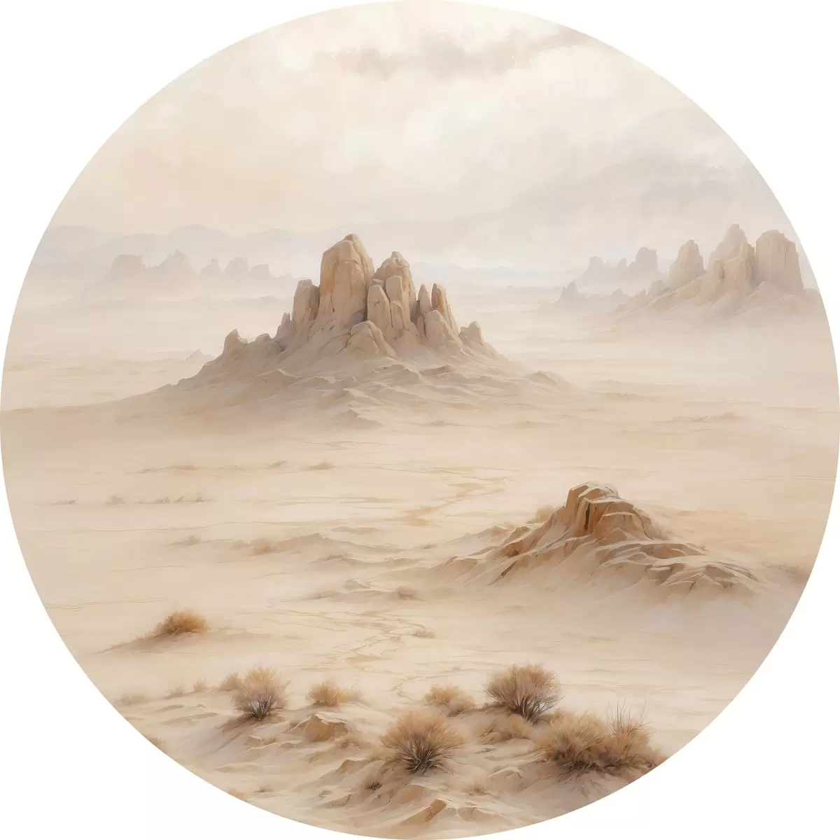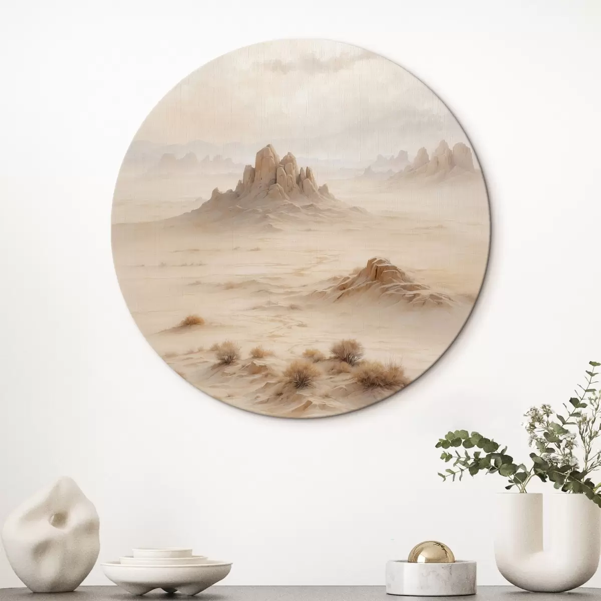 Apaļas gleznas Minimālisma tuksneša ainava ar kalnu klintīm r44883