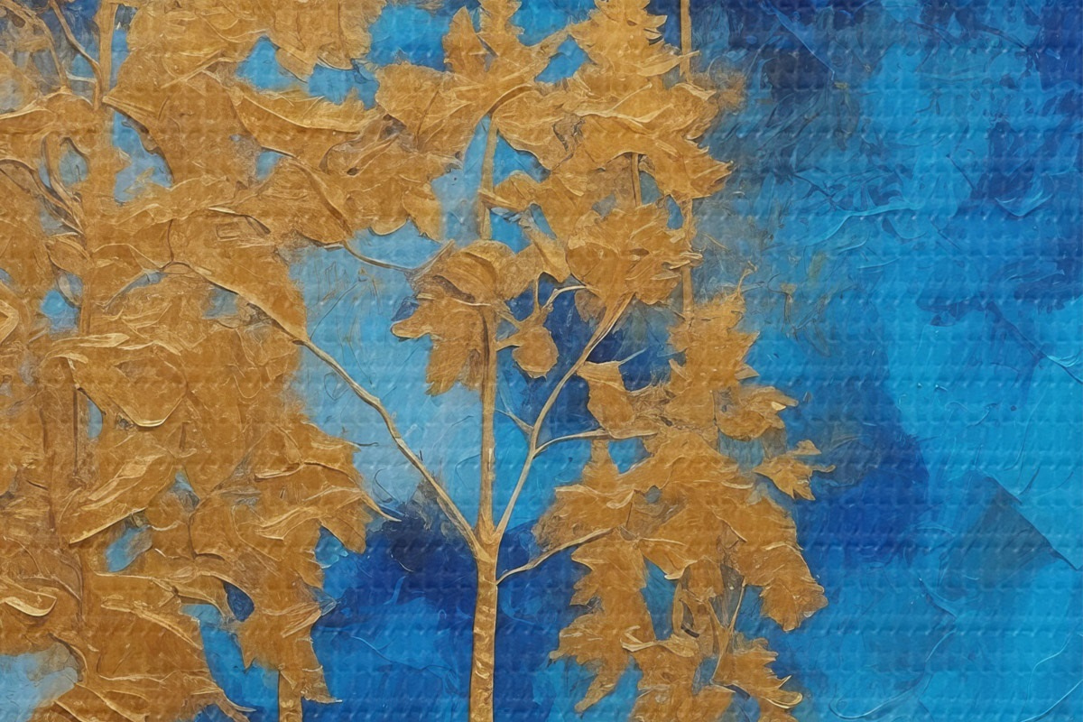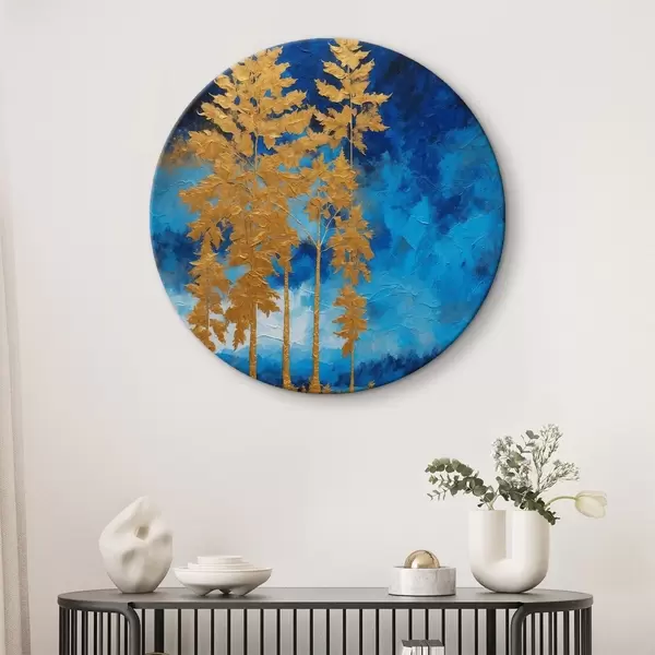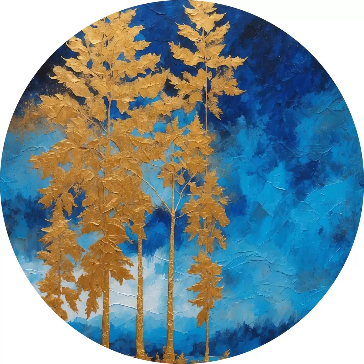 Apaļas gleznas Koki uz nakts debesu fona zilos toņos r44888