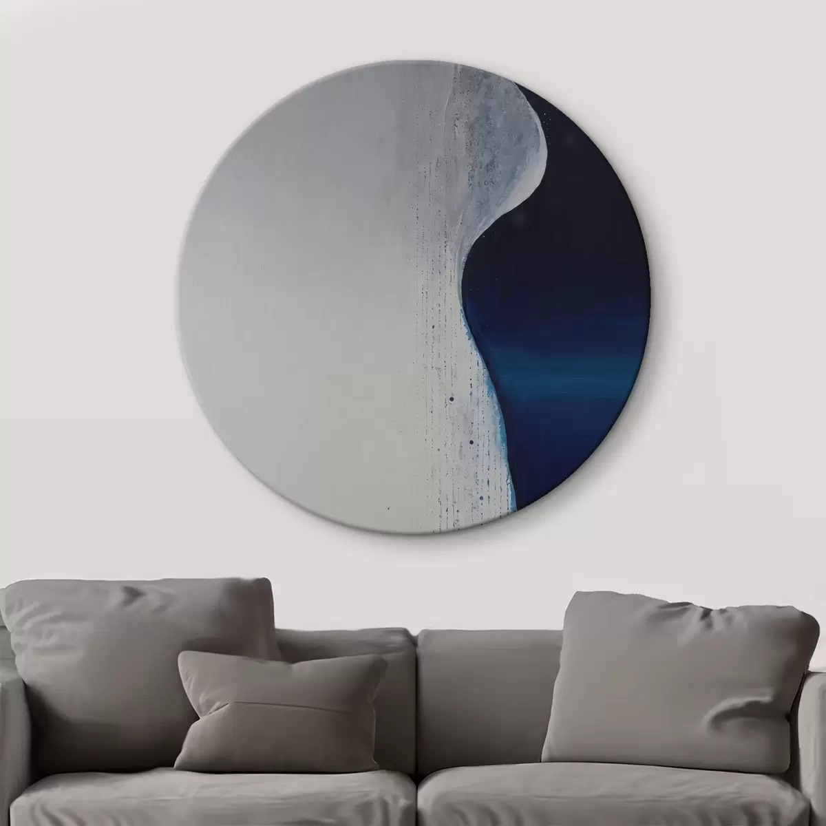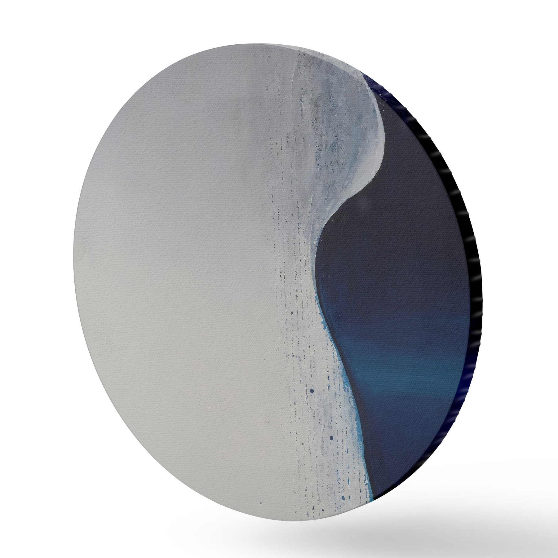 Apaļas gleznas Abstrakcija viļņa formā ar baltu un zilu paleti zila palete zila palete r44895