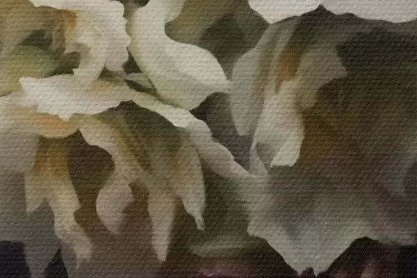 Smalkais diegu pinums uz šī audekla atgādina profesionālu mākslinieku audeklu virsmu.