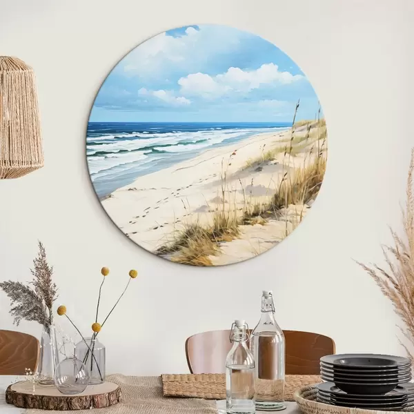 Apaļas gleznas Zāle piekrastē zem zilām debesīm r44917