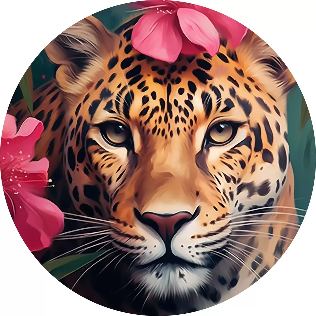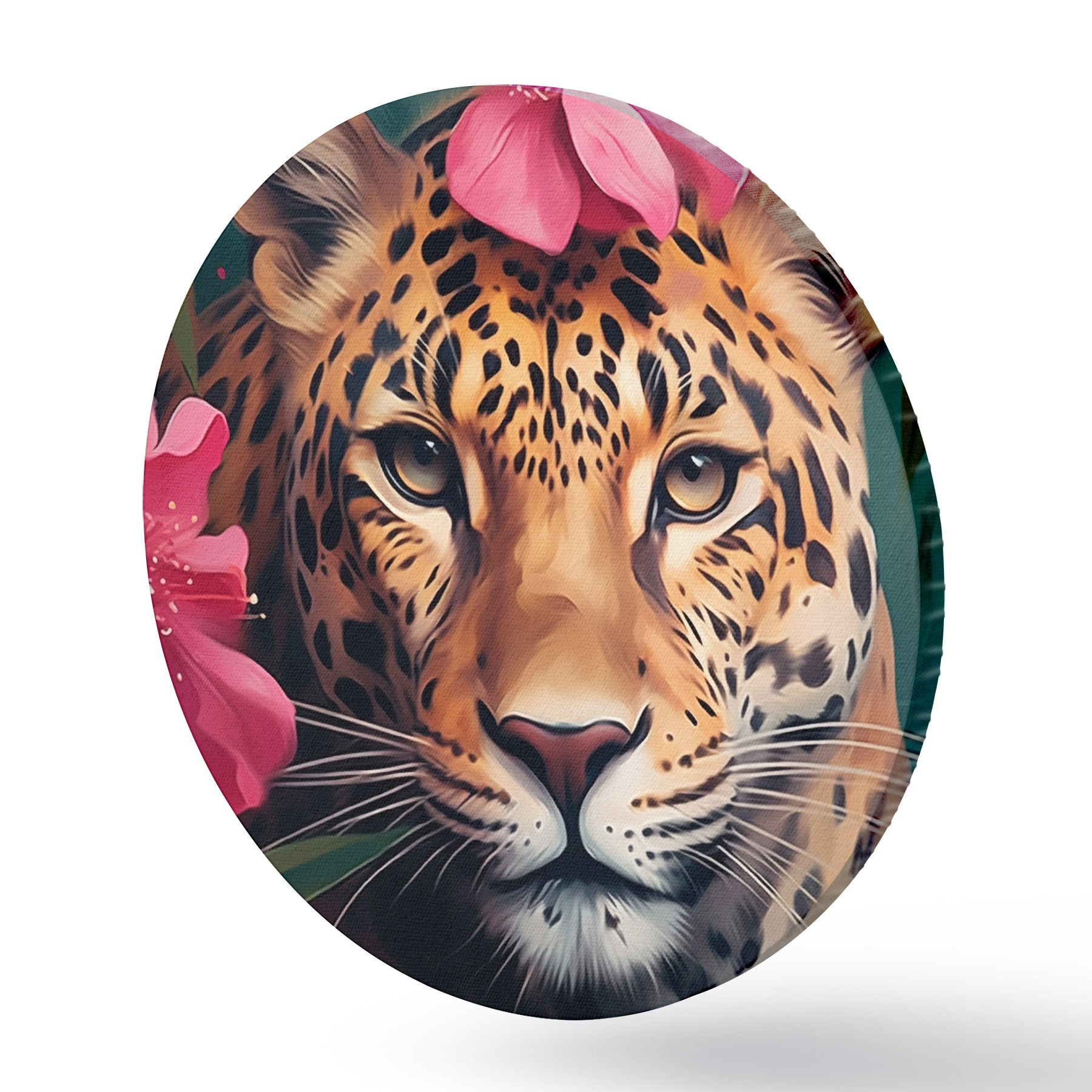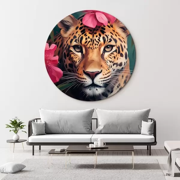 Apaļas gleznas Leopards starp tropu ziediem r44918