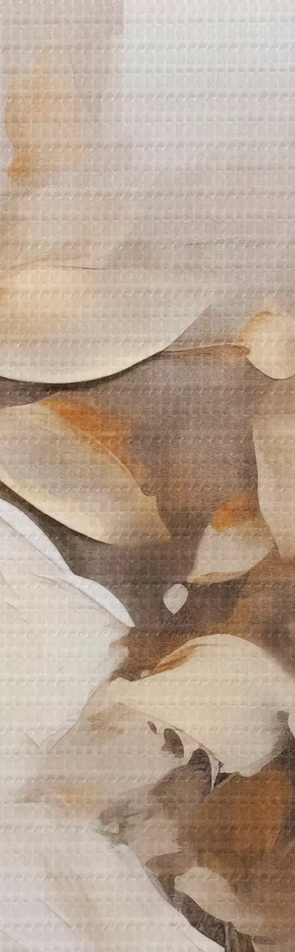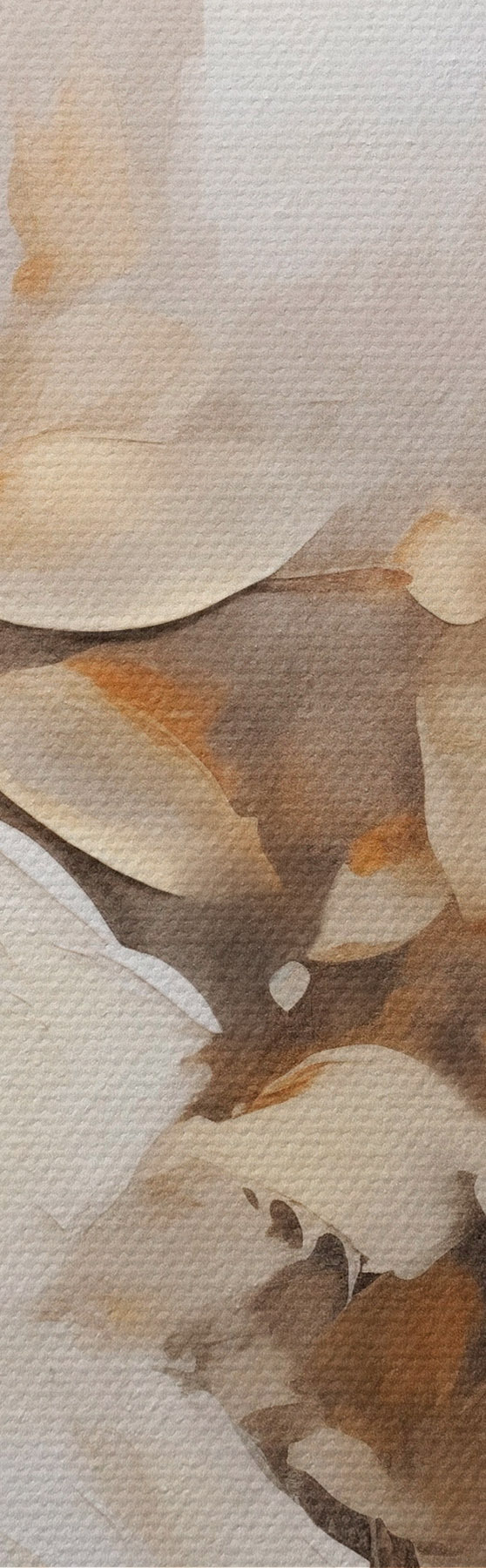 Attēls Balti ziedi ar brūnām lapām smilškrāsas fona, eļļas glezna imitācija, ziedu kompozīcija, botāniskā māksla Nr r44922