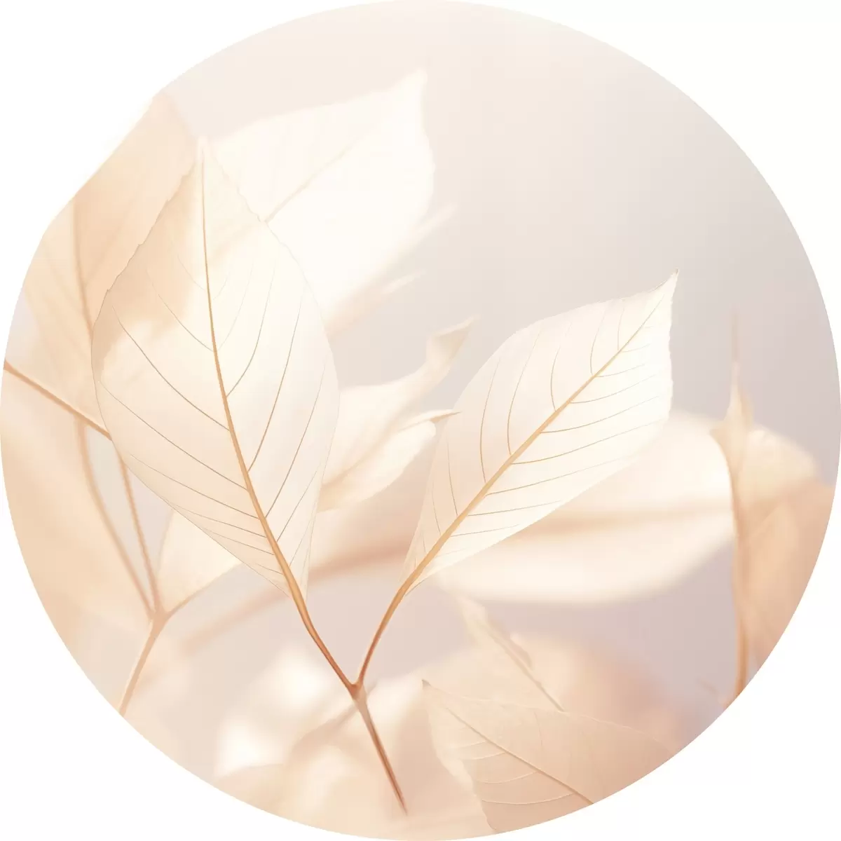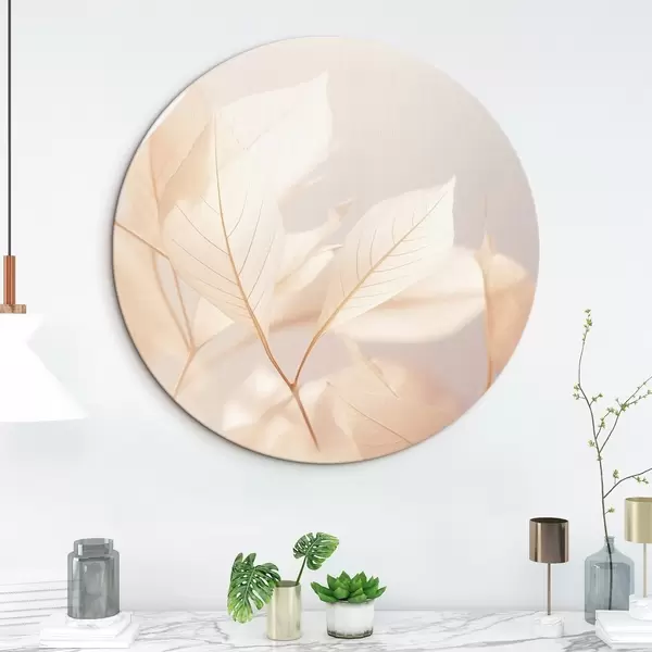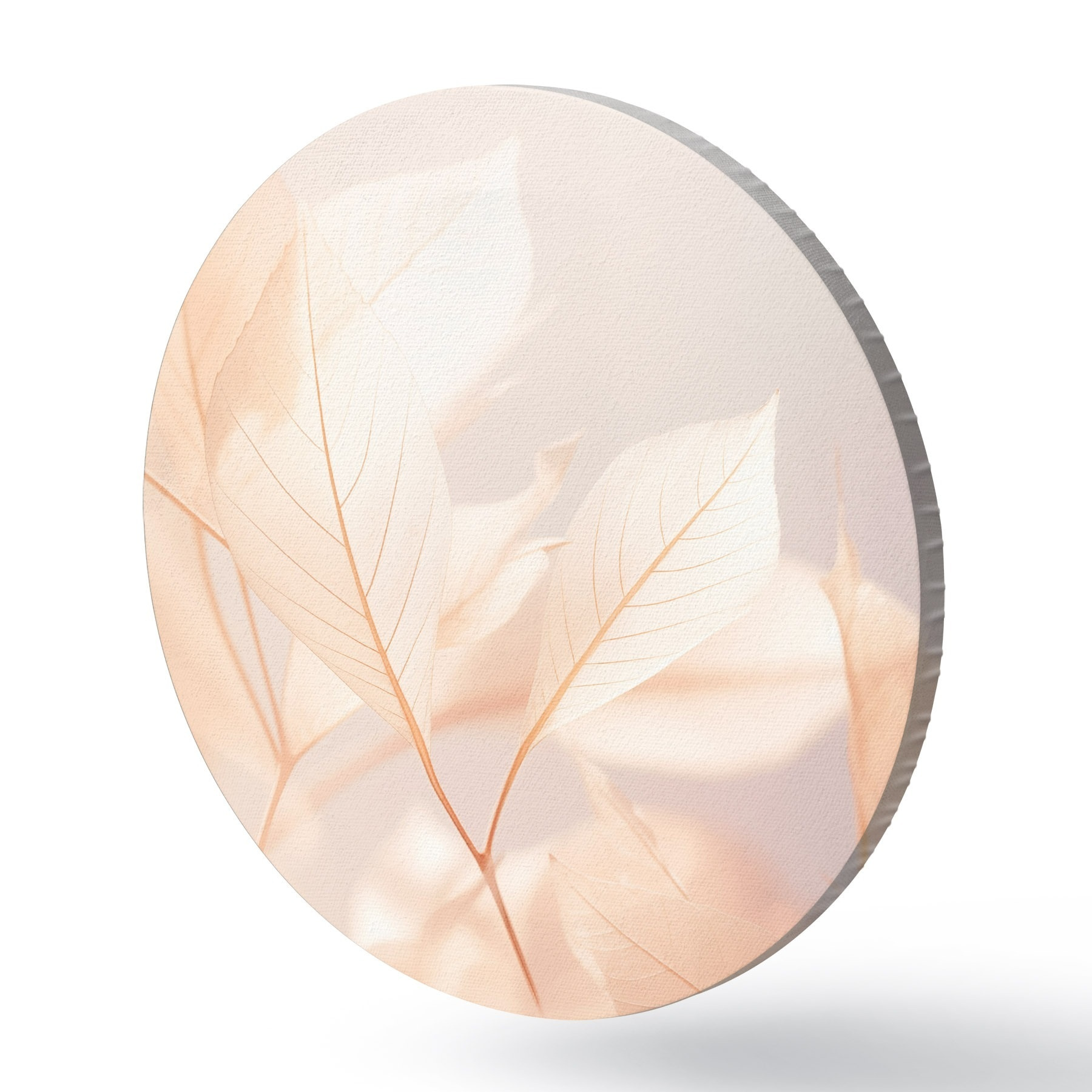 Apaļas gleznas Caurspīdīgas lapas ar sarežģītiem dzīslu rakstiem, maiga pasteļkrāsu palete, ēterisks apgaismojums, minimālisma kompozīcija r44928