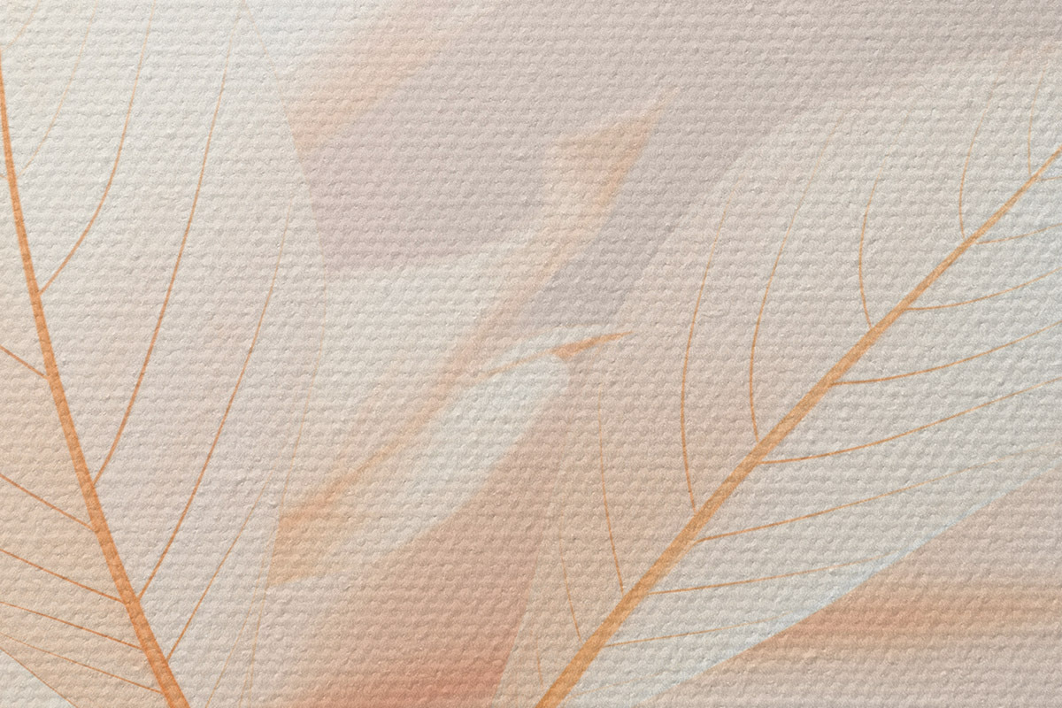 Attēls Caurspīdīgas lapas ar sarežģītiem dzīslu rakstiem, maiga pasteļkrāsu palete, ēterisks apgaismojums, minimālisma kompozīcija Nr r44928