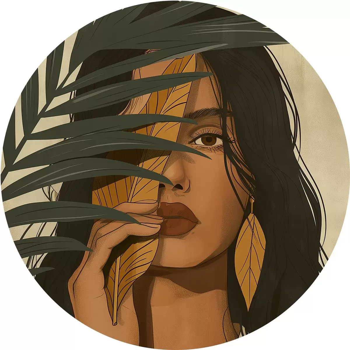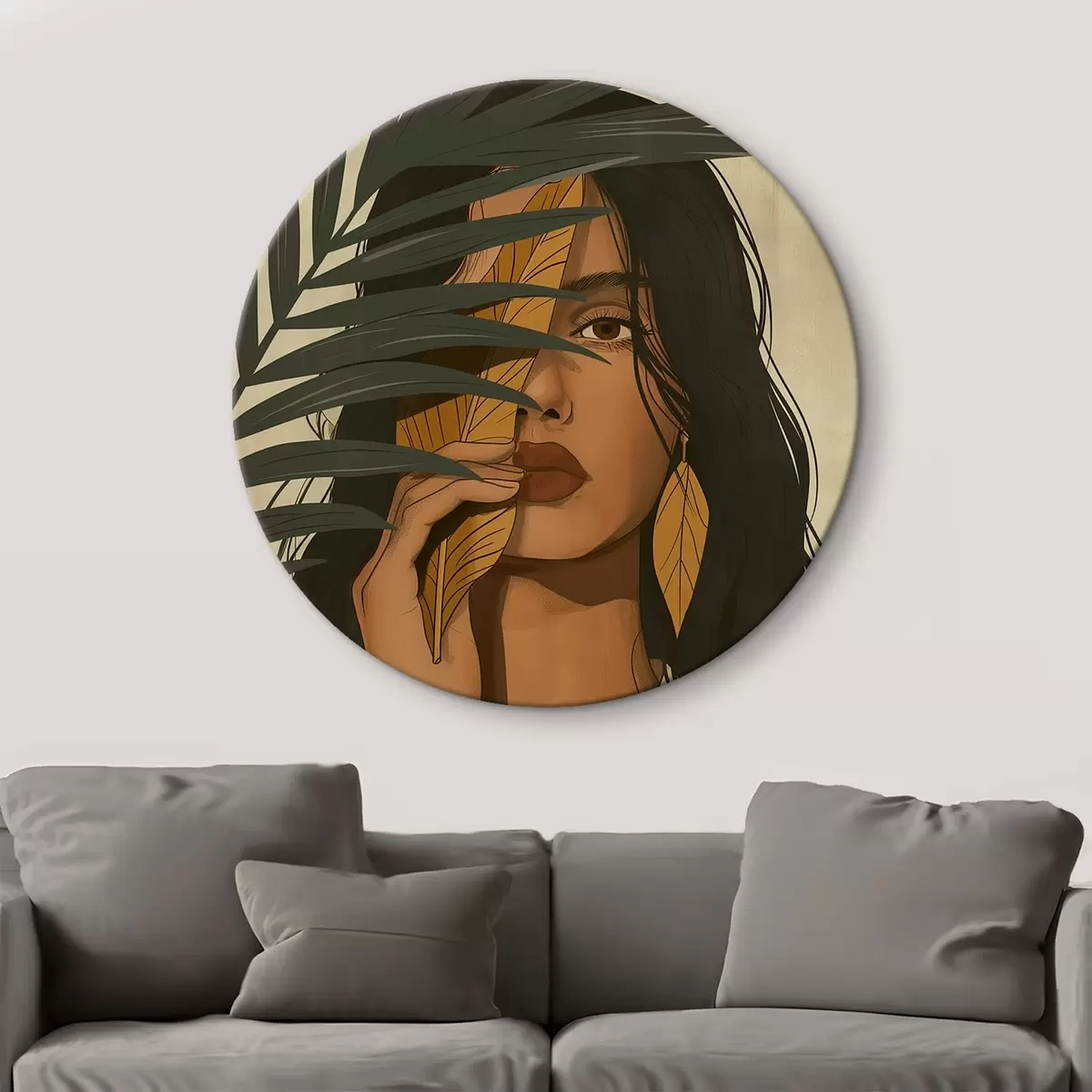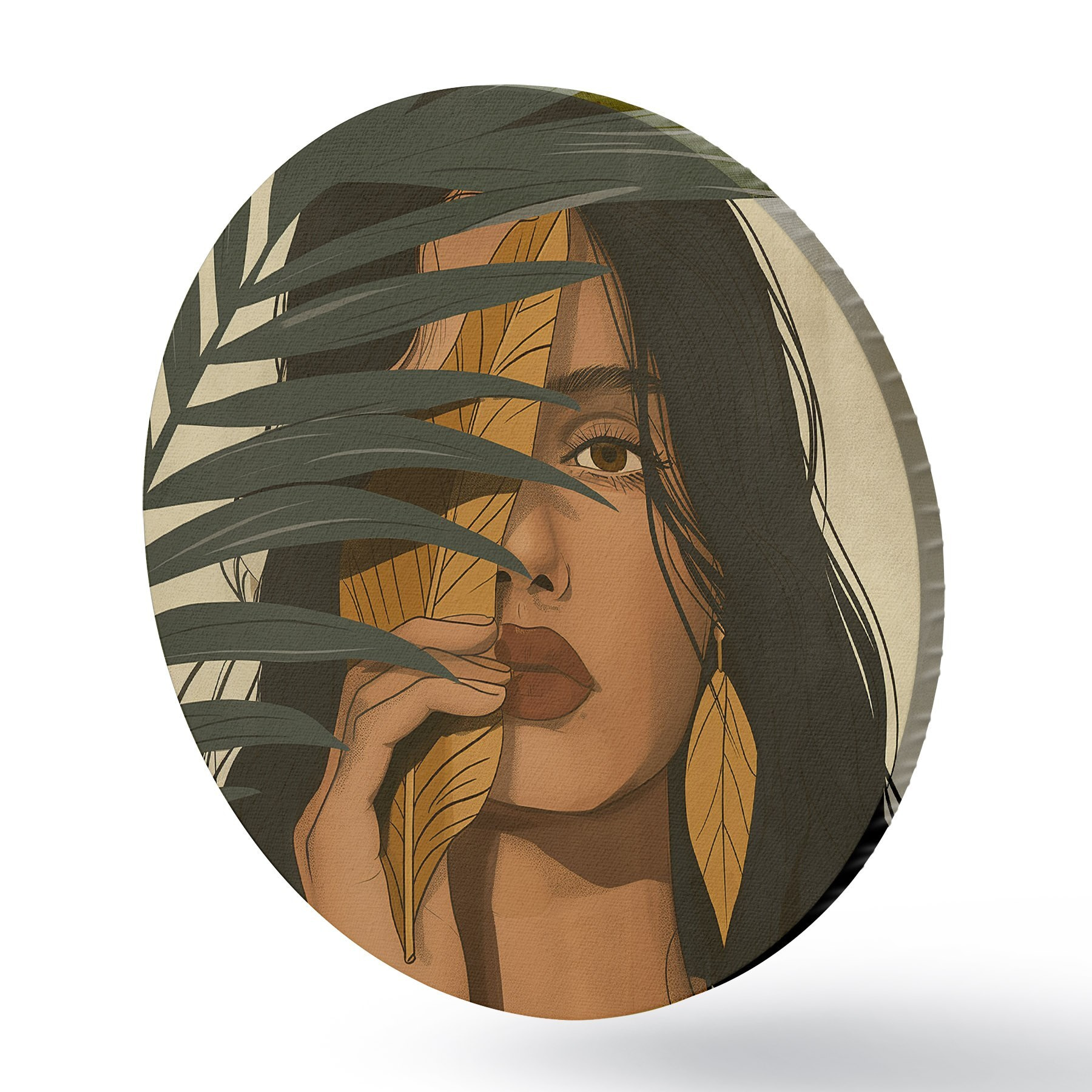 Apaļas gleznas Aiz lapām paslēpta seja r44960