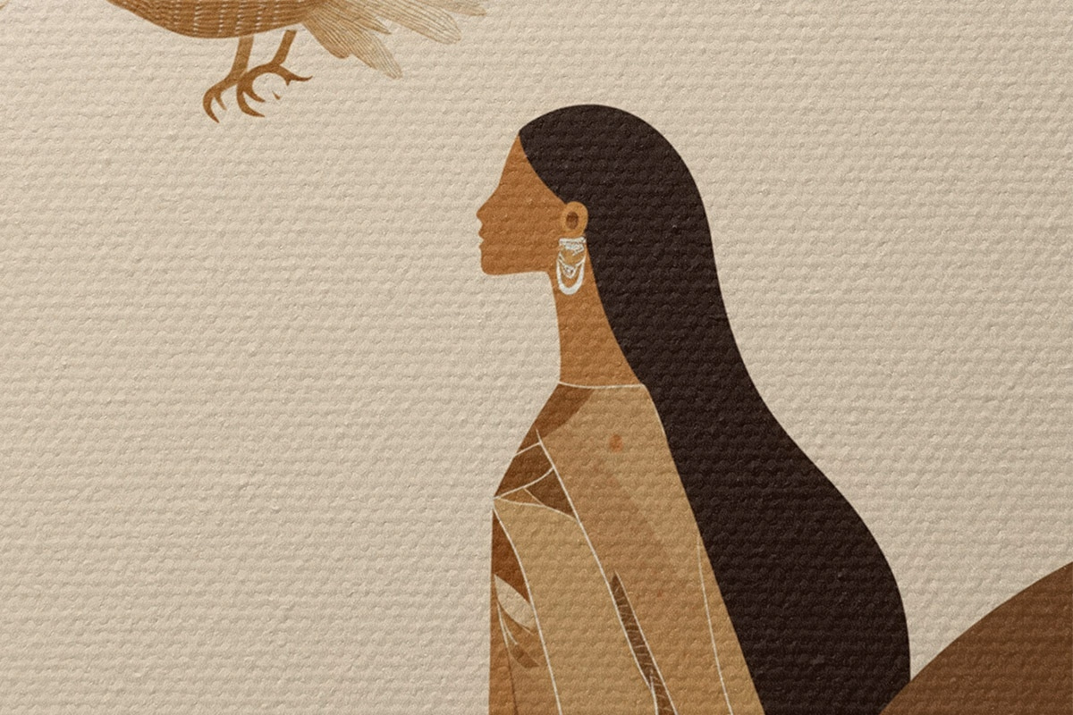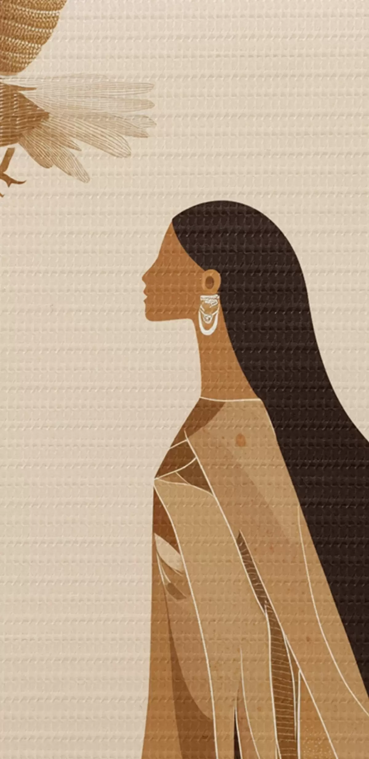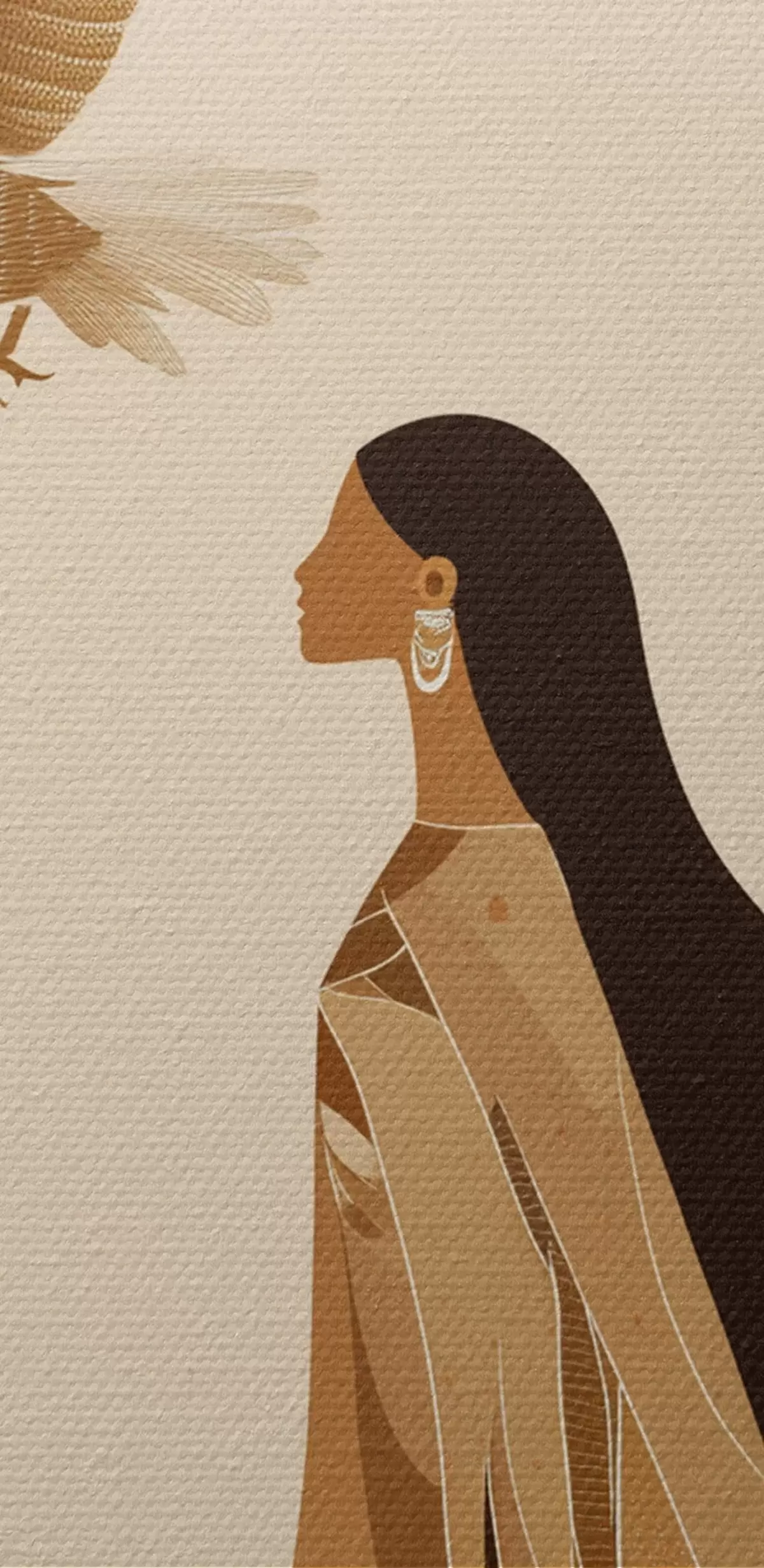 Attēls Abstrakcija ar sievieti un ērgli debesīs, bēšas krāsas Nr r44978