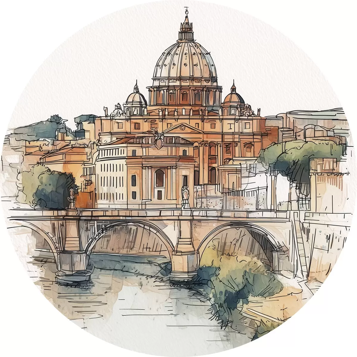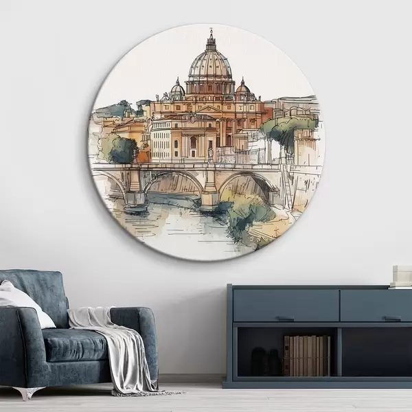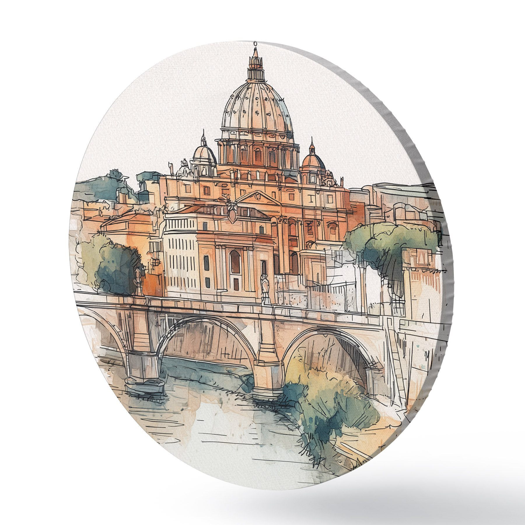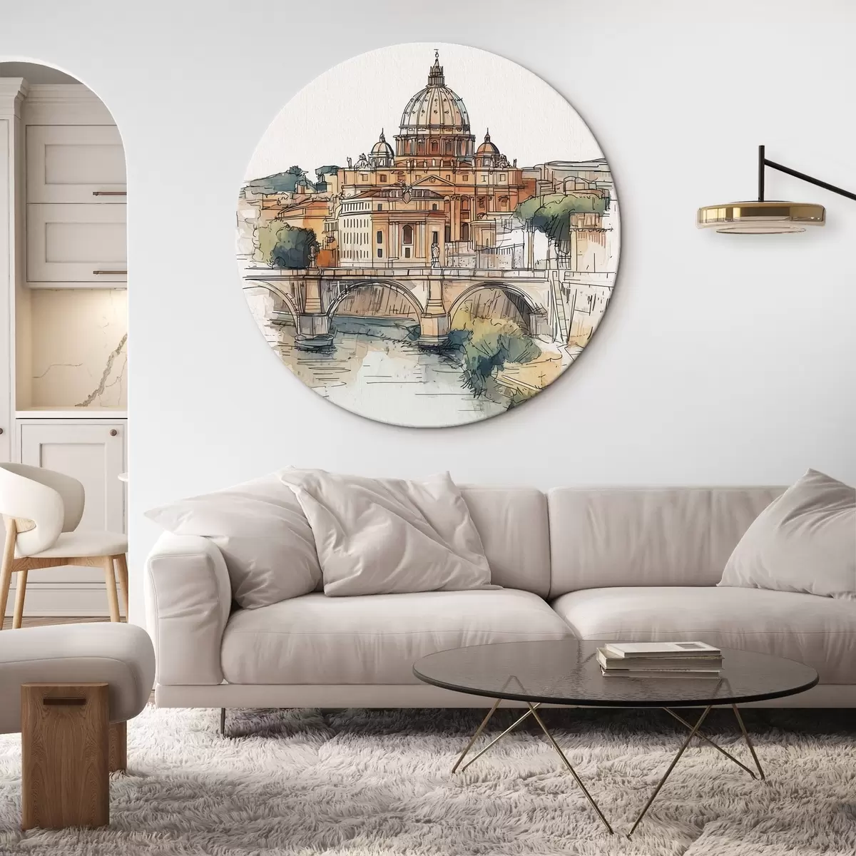 Apaļas gleznas Akvarelis Romas pilsēta, skiču zīmējums, arhitektūra r44983