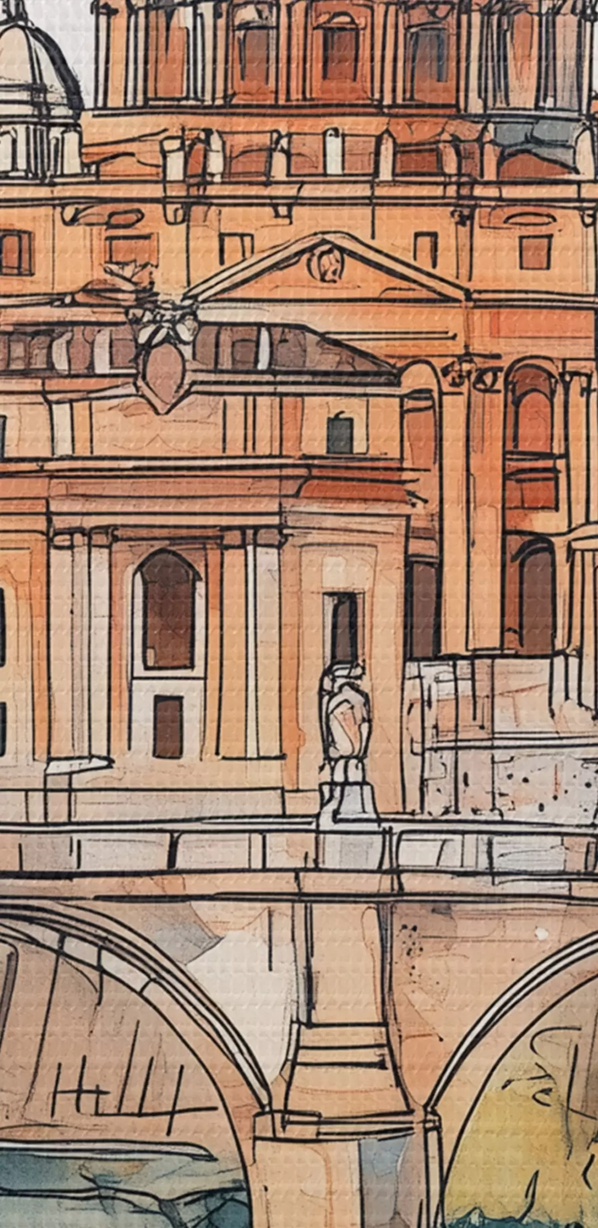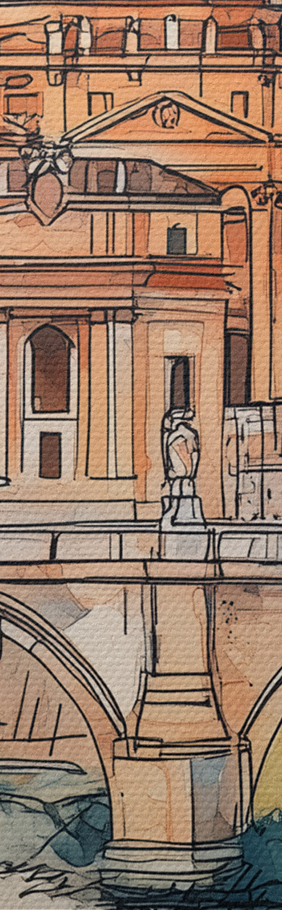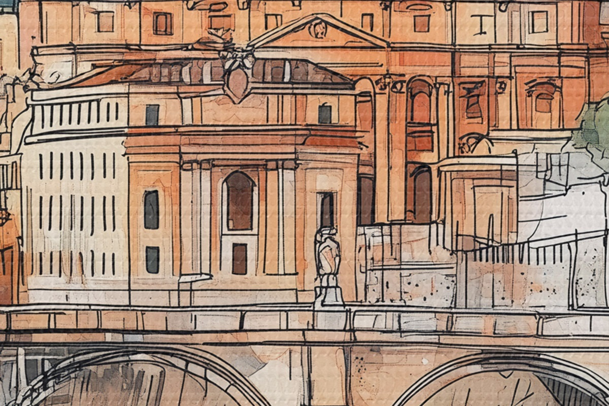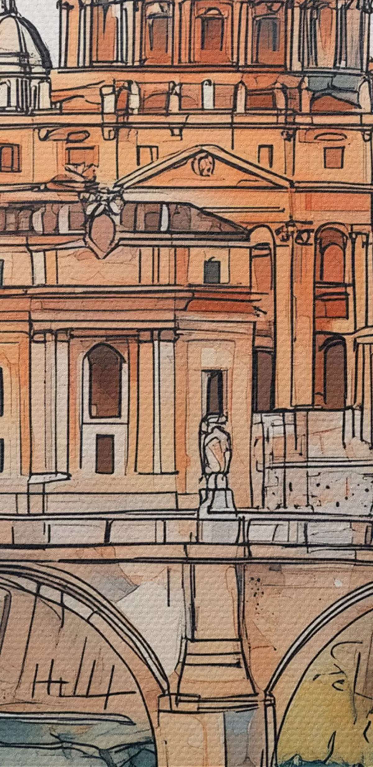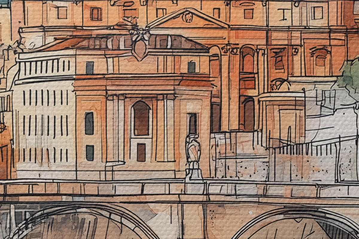 Attēls Akvarelis Romas pilsēta, skiču zīmējums, arhitektūra Nr r44983