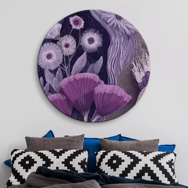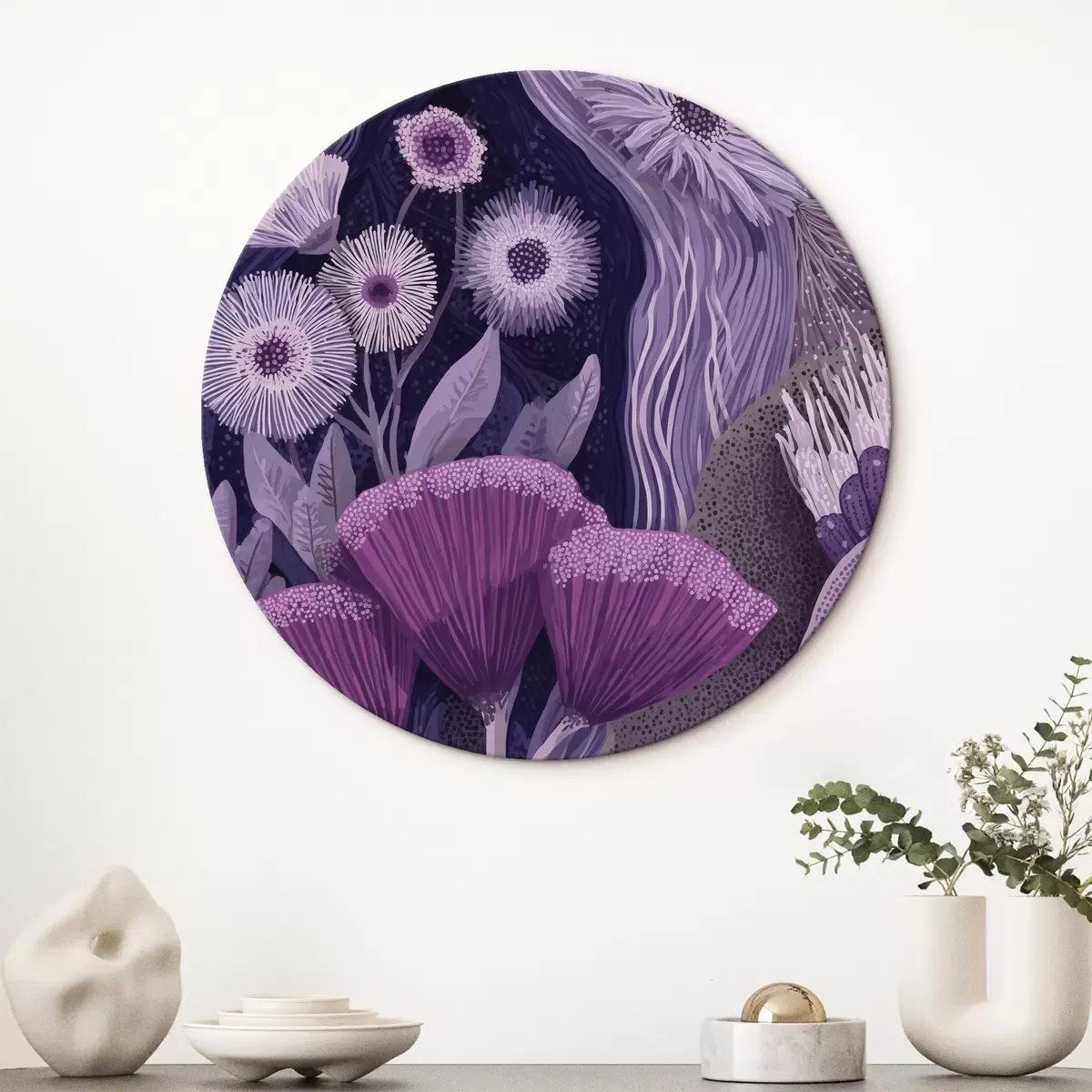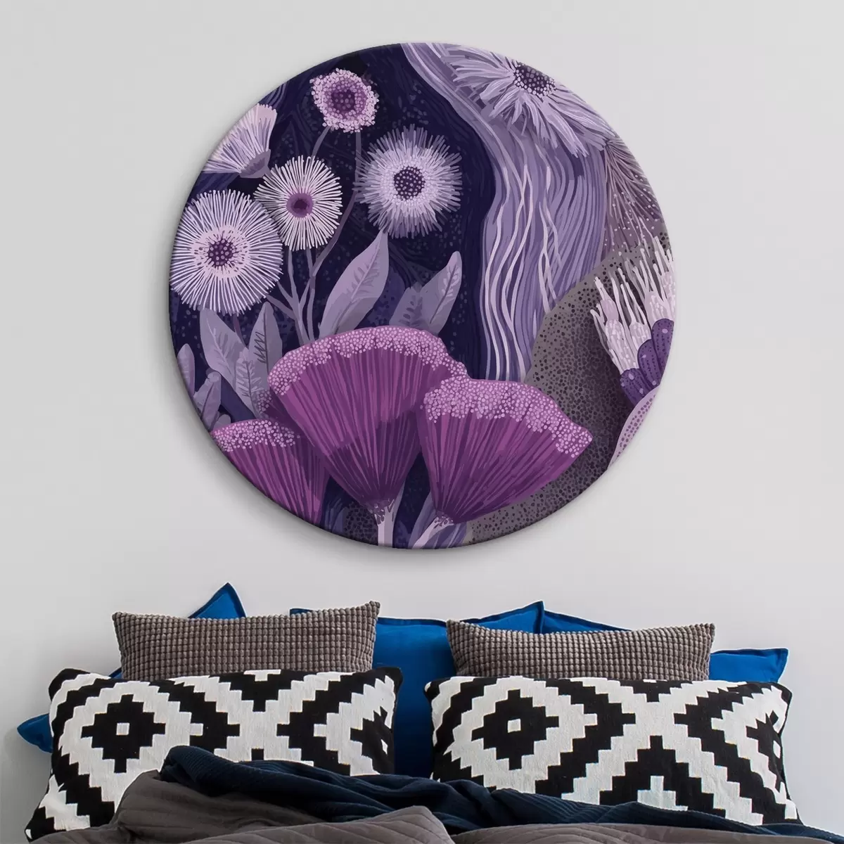 Apaļas gleznas Ziedu dizains violetās krāsās, detalizēts zīmējums r44984
