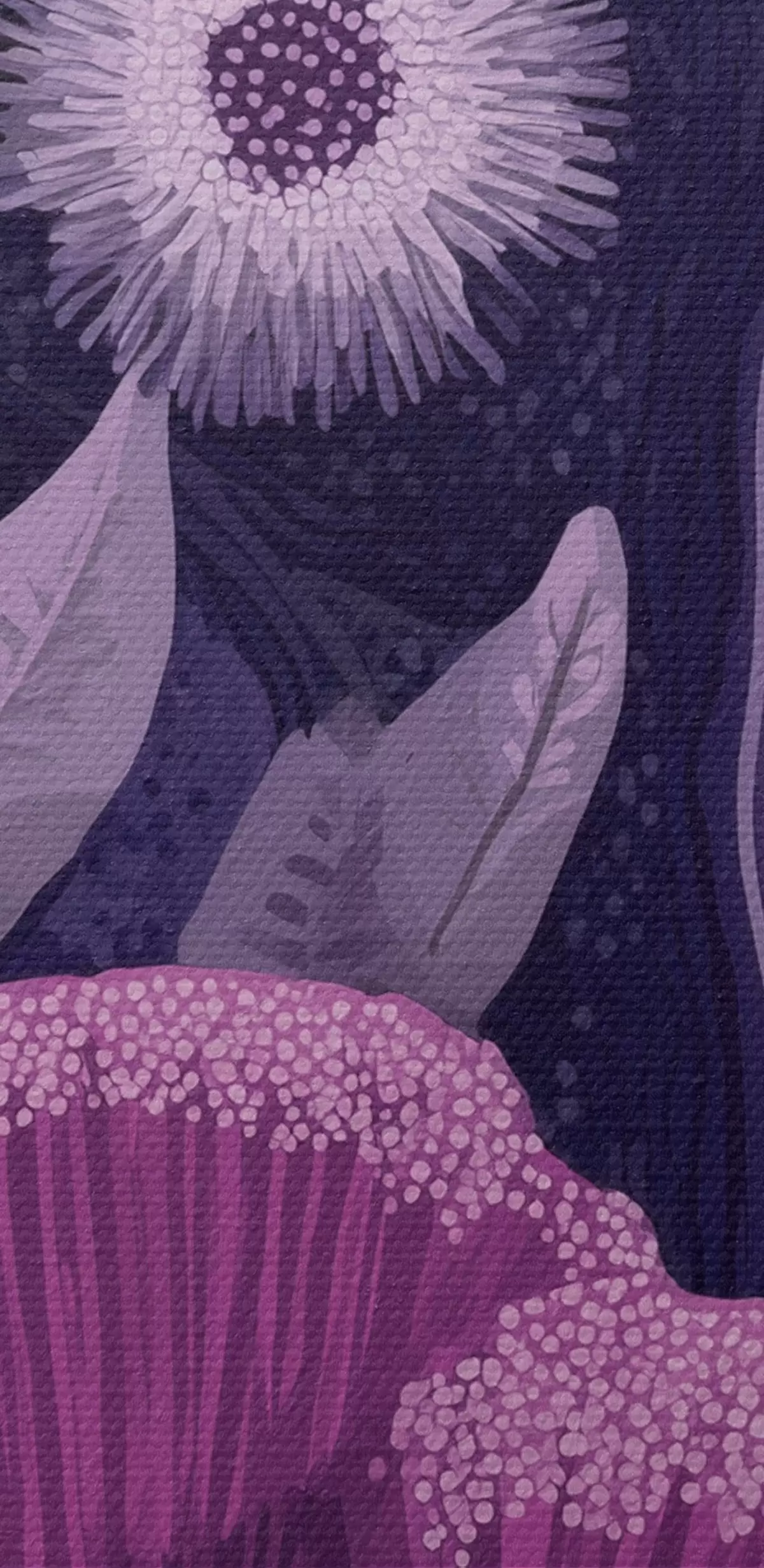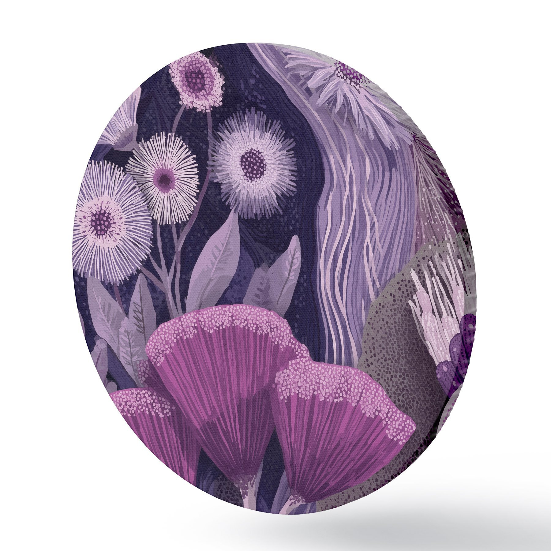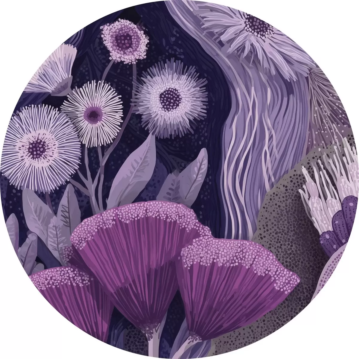 Apaļas gleznas Ziedu dizains violetās krāsās, detalizēts zīmējums r44984